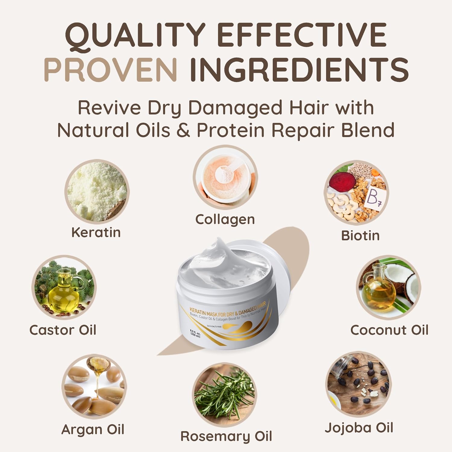 - Salon-Quality Damaged Hair Treatment: Get professional results at home with our deep conditioner for dry damaged hair, a luxurious keratin mask that restores shine, vitality, and manageability