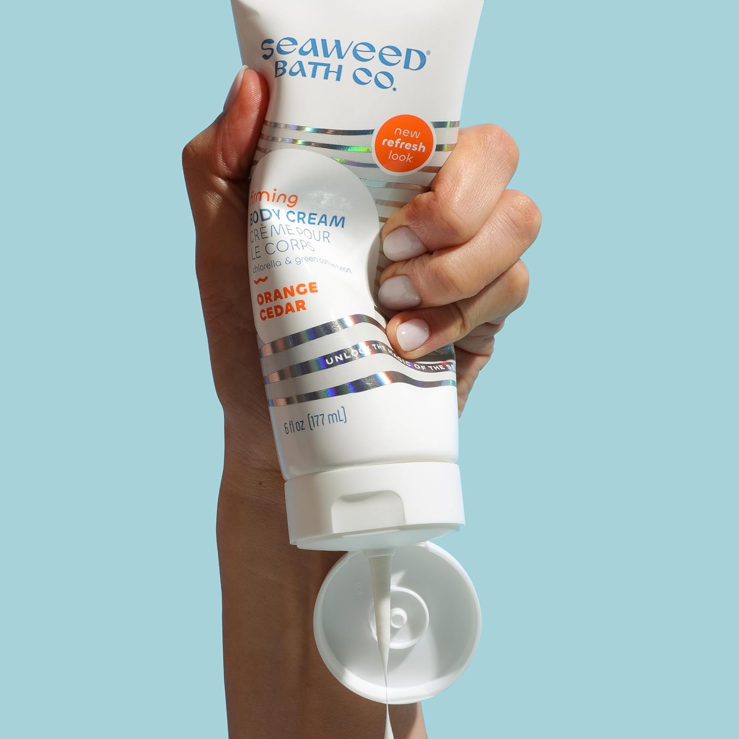 Seaweed Bath Co. Firming Body Cream, Orange Cedar Scent, 6 Ounce, Skin Toning Hand & Body Lotion Moisturizer for Dry Skin, with Sustainably Harvested Seaweed, Chlorella, Green Coffee Bean