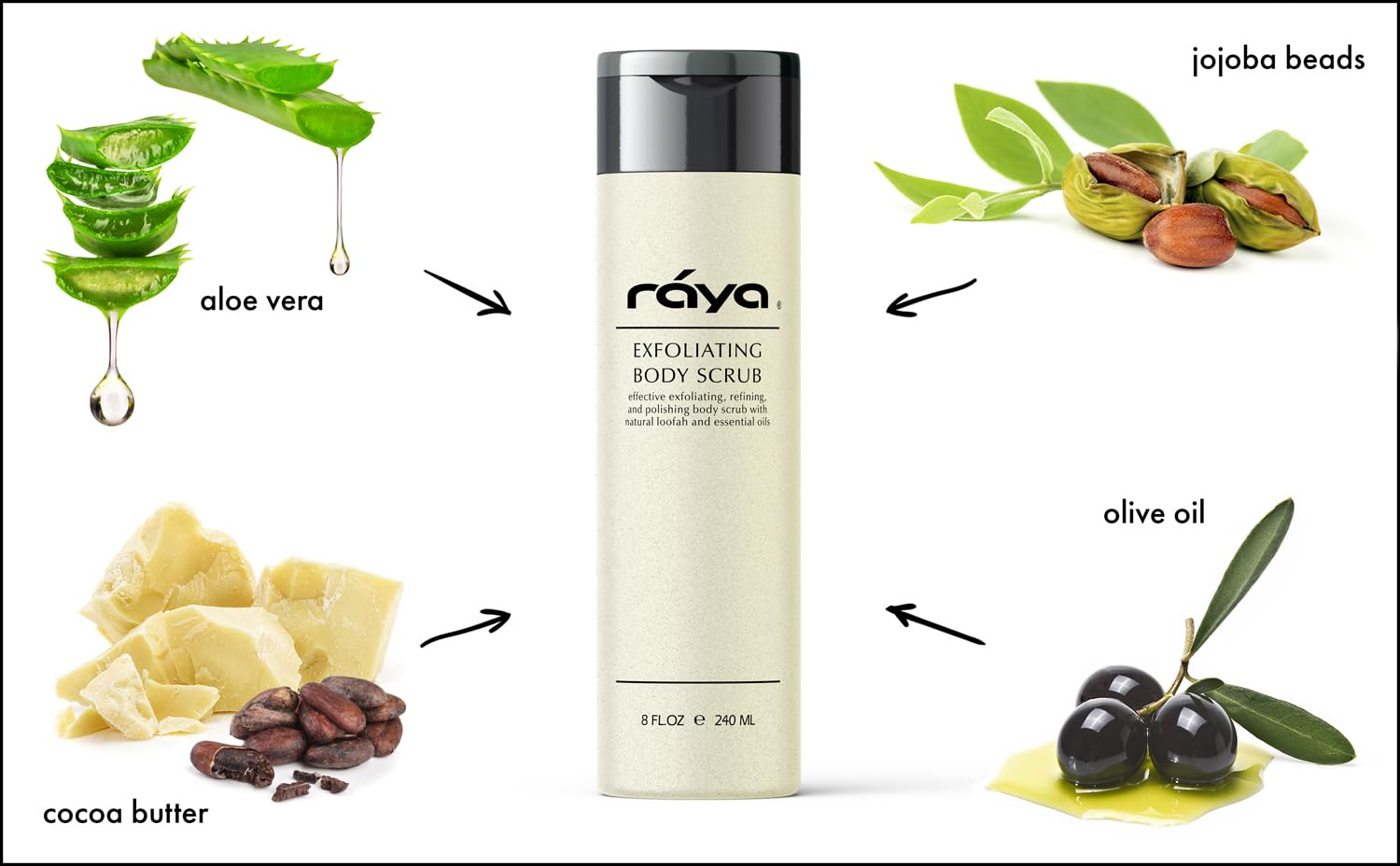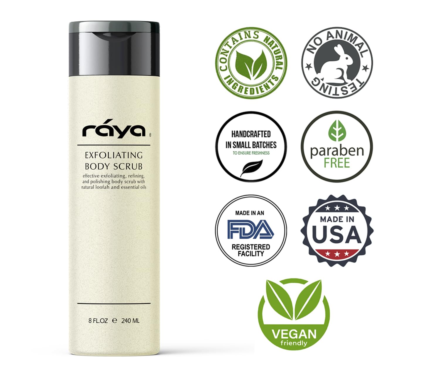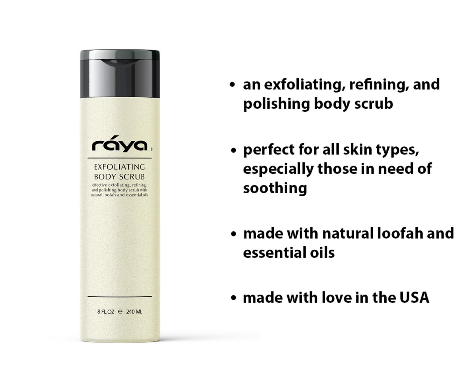 RAYA Exfoliating Body Scrub 8 oz (S-103) | Exfoliating, Refining, and Polishing Body Scrub | Made with Natural Loofah and Essential Oils | Relieves Ingrown Hairs