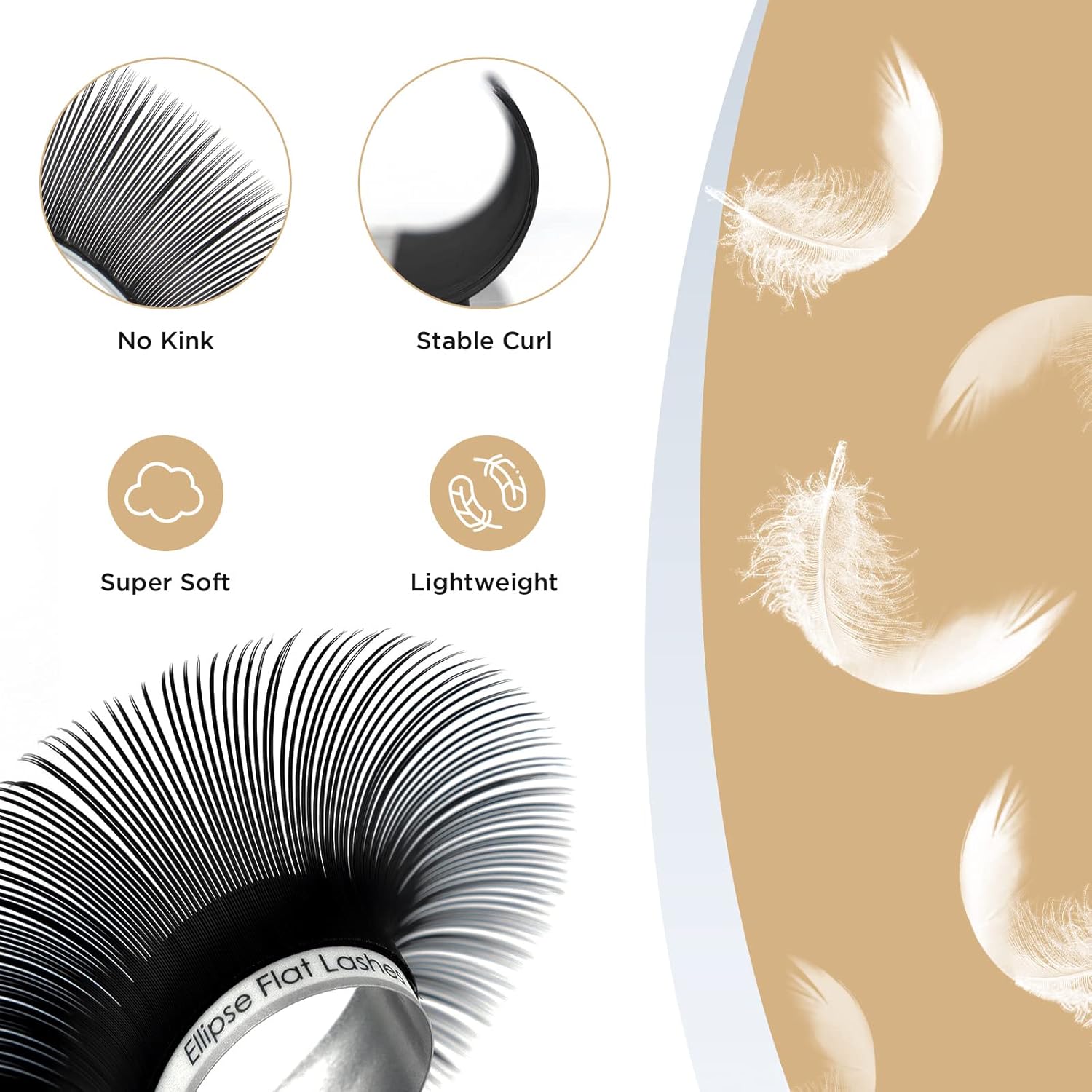 - 【LONGER RETENSION & LIGHTWEIGHT】 Ellipse Flat Lashes is a great alternative of normal classic lash extensions, they are 75% lighter and increased volume without the extra weight. These lashes have been cleverly designed with the purpose of excellent bonding and the ability to give the appearance of a more glamorous, full volume look! Clients who have thinner lashes can have a flat lash applied without any damage to natural lashes.