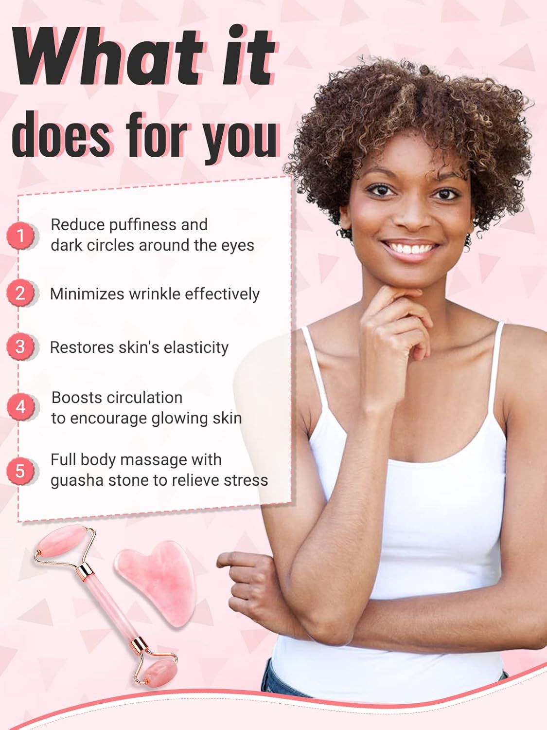 - ā Rejuvenate Skin & Relax Yourself - Jade face roller and gua sha massage tool are great for improve blood circulation, which can reduce puffiness, wrinkling, firm your skin and relax muscles. It is much helpful to relief pressure, always with a relaxative and graceful mood.