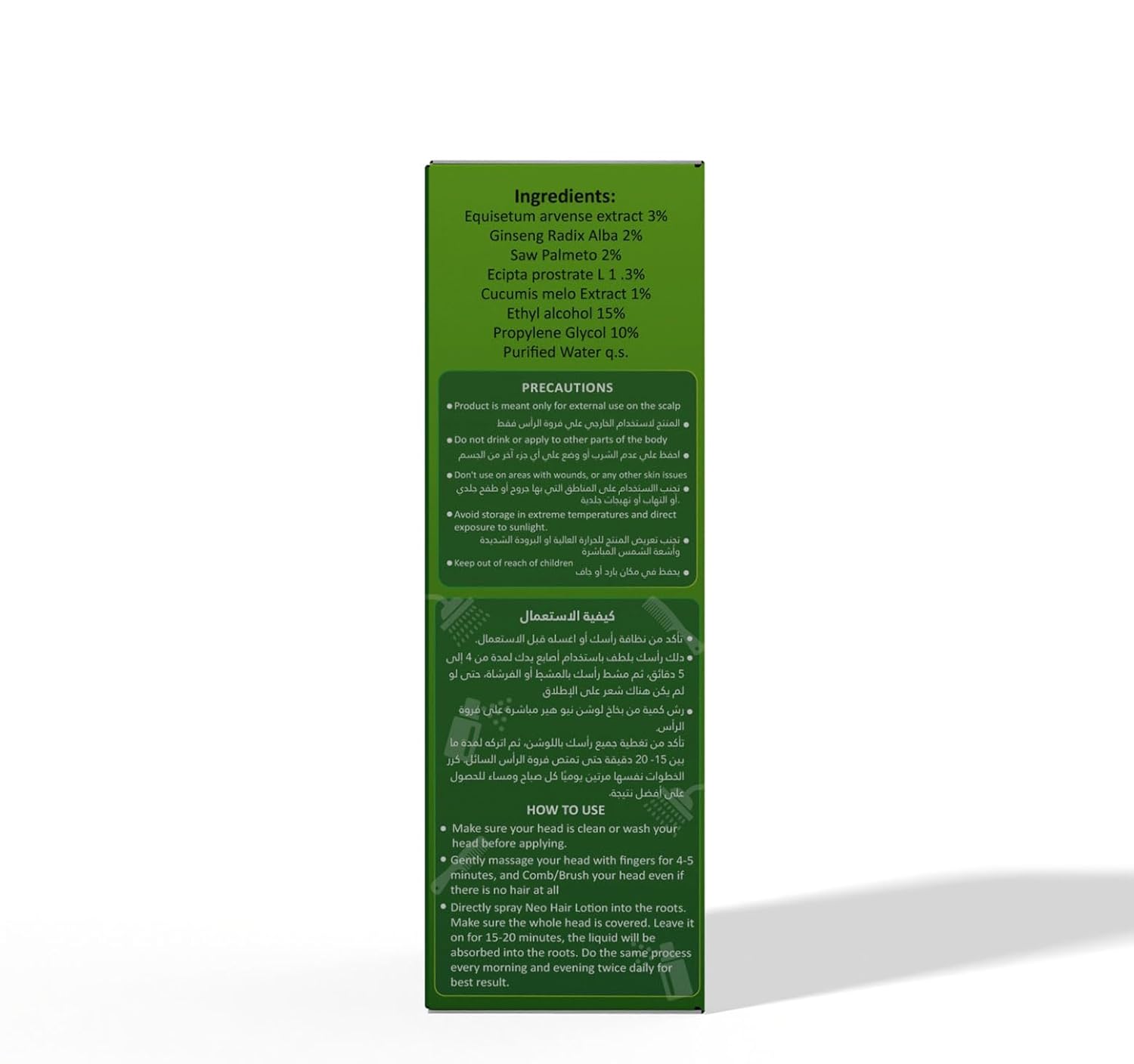 - Cantaloupe extract is well used in Neo Hair Lotion, and regular usage can accelerate the germination of black hair length and strength to inhibit the fall. The hair is soft and shiny.
