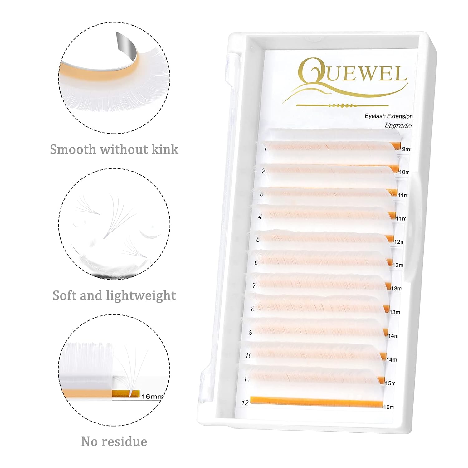 QUEWEL Easy Fan Volume Lashes .07 D Curl White Lash Extensions 9-16mm Mixed Tray Color Self Fanning 2D-10D Eyelash Extensions (White 0.07 D 9-16mm)
