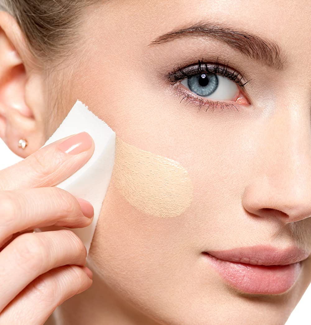 • Large, smooth surfaces of wedge provide even coverage when applying foundation to cheeks and forehead