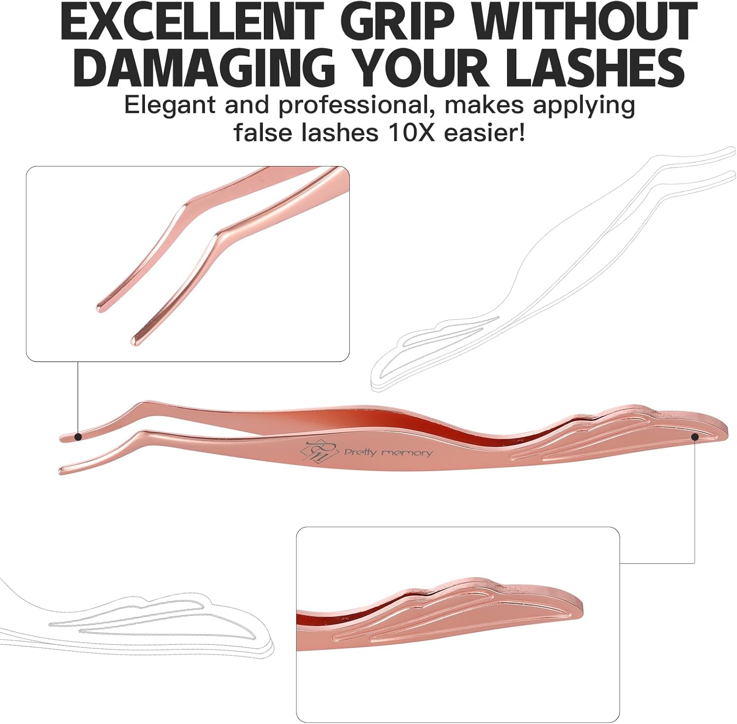 Pretty memory Eyelash Applicator Tool Stainless Steel Lash Tweezers Curved Eyelash Tweezers for Easy Lash Application and Removal, Rose Gold