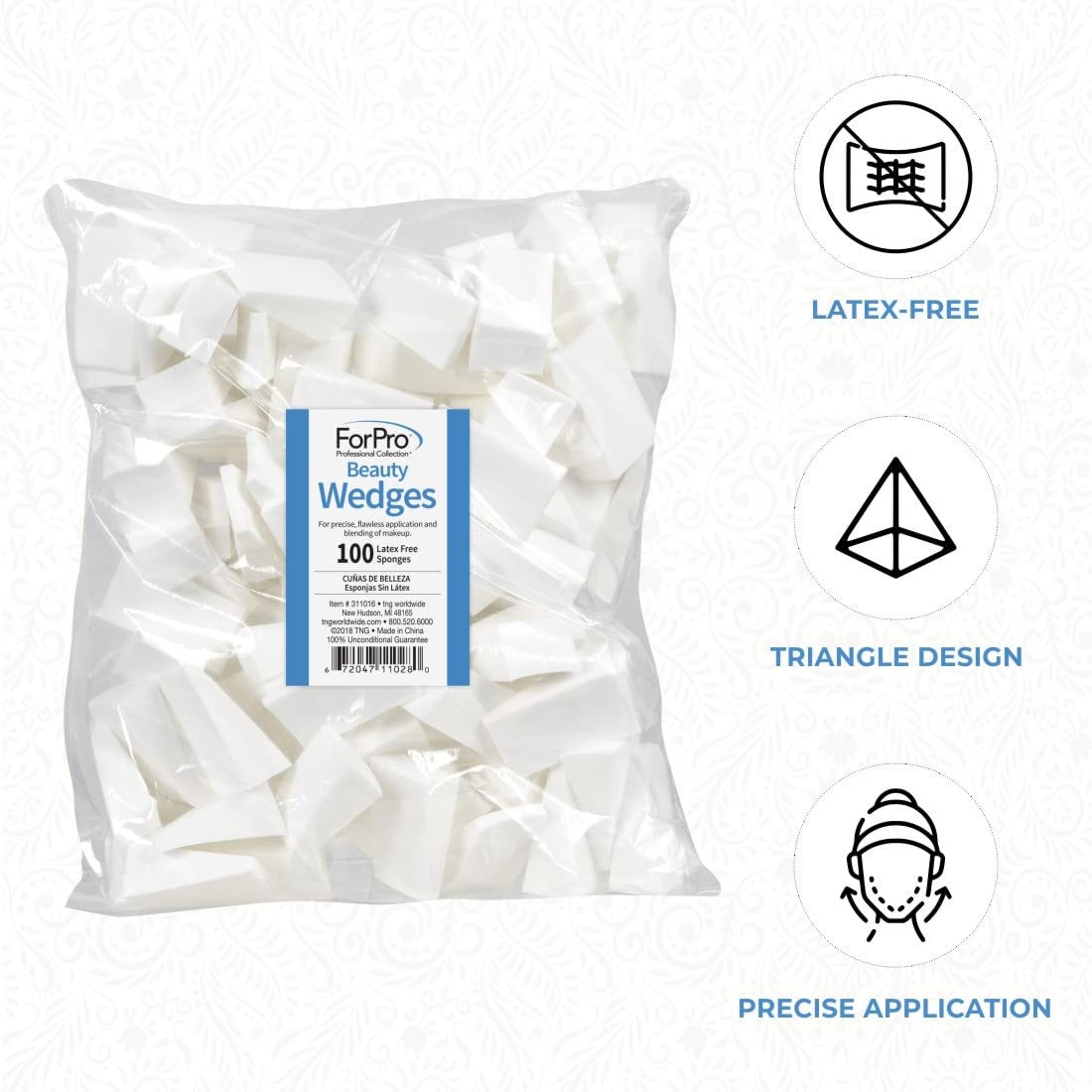 ForPro Professional Collection Beauty Wedges, Latex Free Foam Sponges, Makeup Blenders for Powder and Liquid Makeup, 100-Count (Pack of 3)