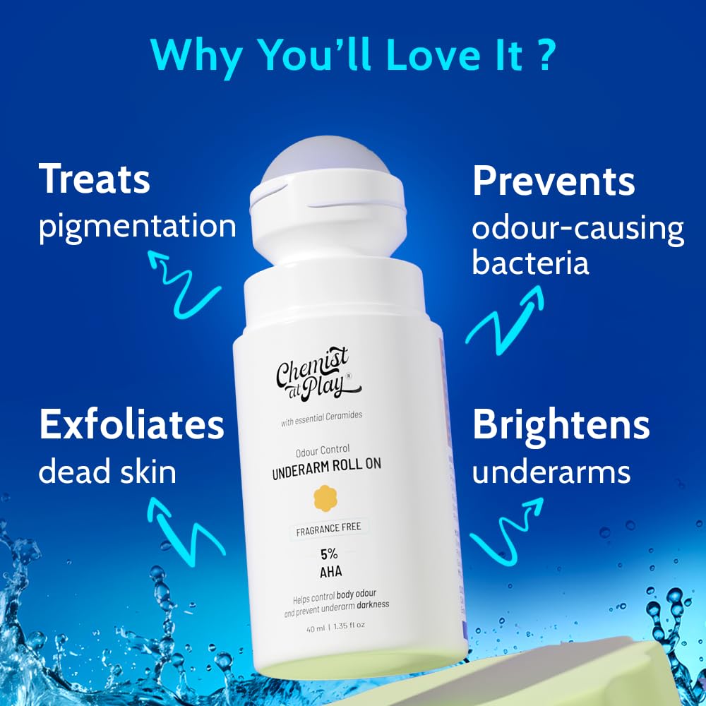 - GENTLE EXFOLIATION: Our underarm roll gently exfoliates the skin as itβs enriched with 4% Lactic Acid + 1% Mandelic Acid. This also helps even out the skin tone and fades spots/patches on the skin, if any.