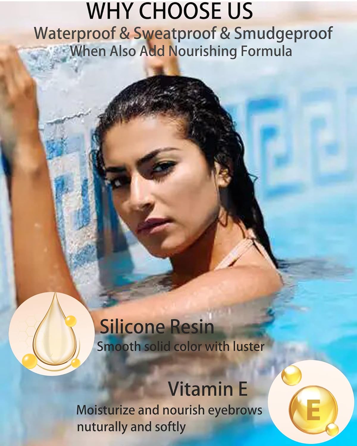 - WATERPROOF & TRANSFEPROOF - The eyebrow tint makeup is waterproof which provide strong resistance against water, sweat and oil. You do not need to worry about color smudging or fading when you are sweating, swimming or taking a shower. Perfectly keeps your eyebrow a grooming and volumizing style
