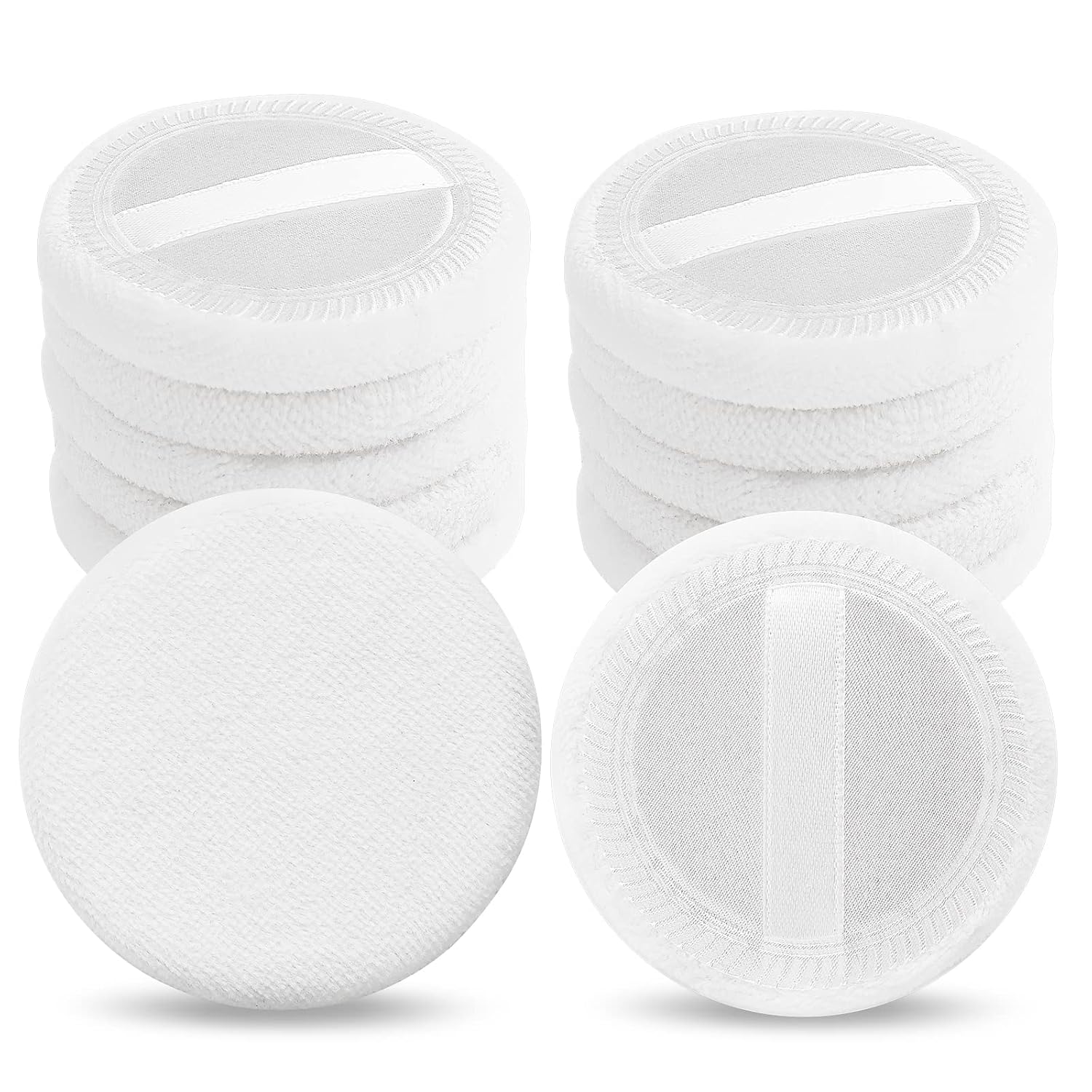 - 【White Powder Puff Round】: Our round loose powder sponge is suitable for applying foundation, loose powder and other cosmetics during makeup, making your makeup look more natural, these powder puffs are very suitable for all kinds of skin, whether you are oily skin, normal skin, dry Skin, combination skin, can use it, with ribbon design on the back, fingers can be put in, not easy to slip off when patting, can provide you with a smooth and flawless even base makeup.