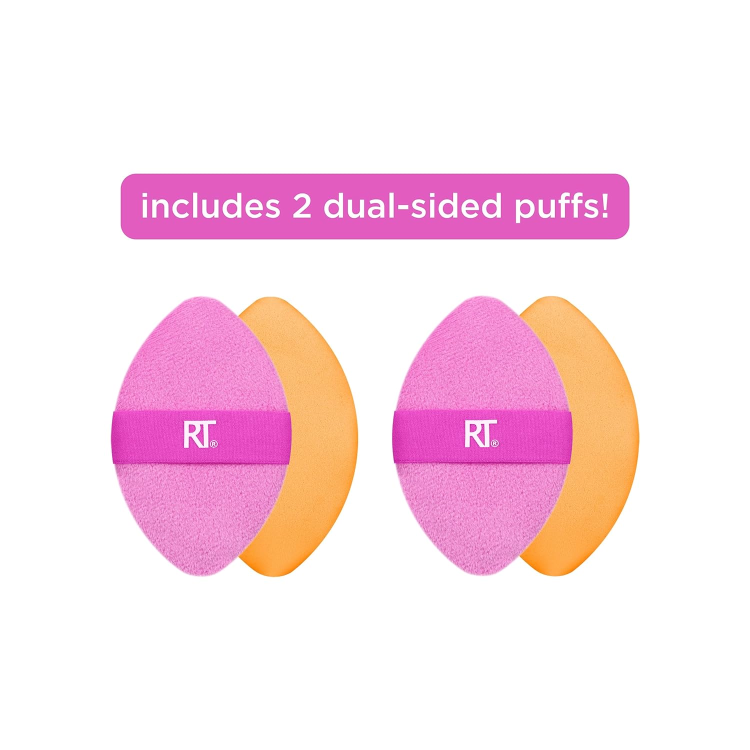 - Includes: (2) Real Techniques Miracle 2-In-1 makeup puffs that are dual-sided to help you achieve a soft, airbrushed finish when setting your base and touching up makeup. Pack size provides easy replacement or makes for the perfect gift
