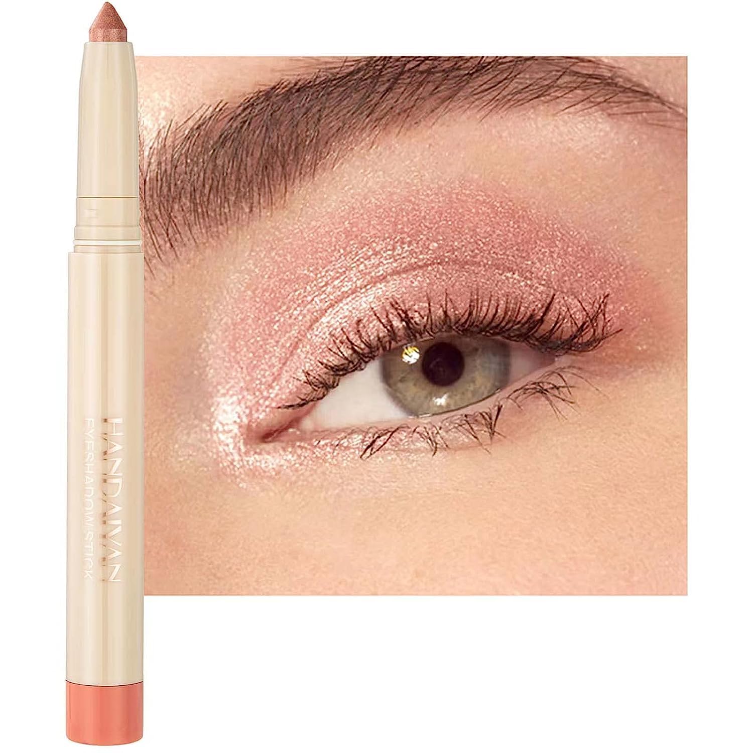 Peach Eyeshadow Stick, Smooth Cream Shimmer Eyeshadow Pencil, Waterproof Long Lasting High Pigmented Hypoallergenic Eye Shadow Highlighter Stick Create Multi-Dimension Eyes Look(20# Peach Shimmer)
