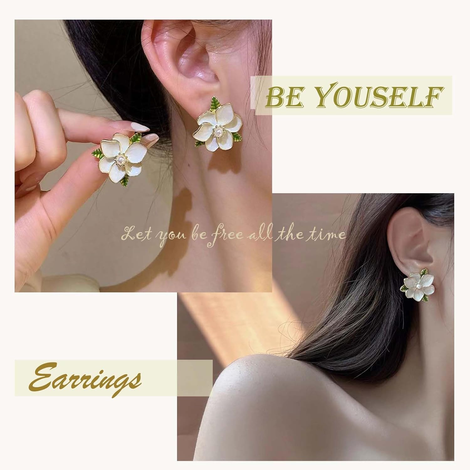- 【Exquisite and Simple】Statement flower earrings perfectly highlight the beauty of this earring jewelry with white flower petal earrings.