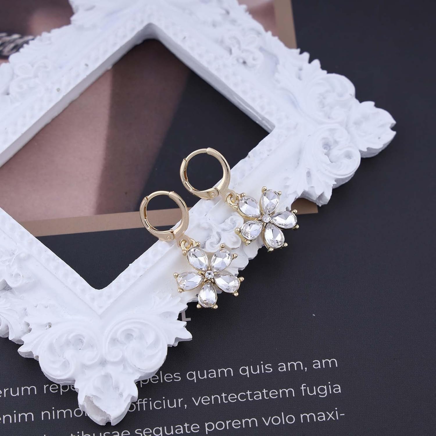Vintage Emerald Flower Drop Earrings Green Crystal Flower Earrings Cz Flower Dangle Earrings Gold Huggie Hoop Earrings Jewelry for Women and Girls