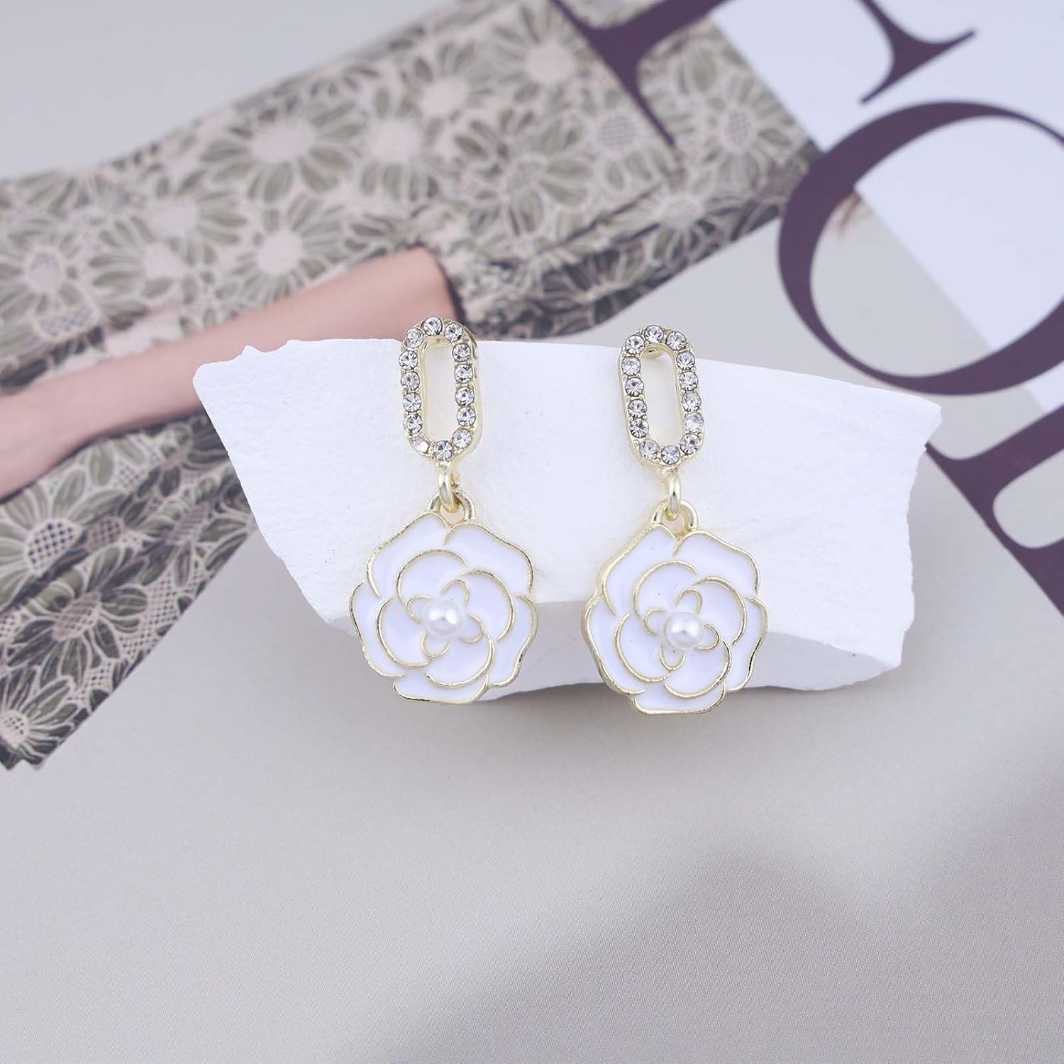 - Enamel white flower earrings.Gift Occasion:Suitable for any Occasion, Such as Beaches, Event Parties, Dance Parties, Dates, .Daily Collocations,Banquet,Weddings, etc.