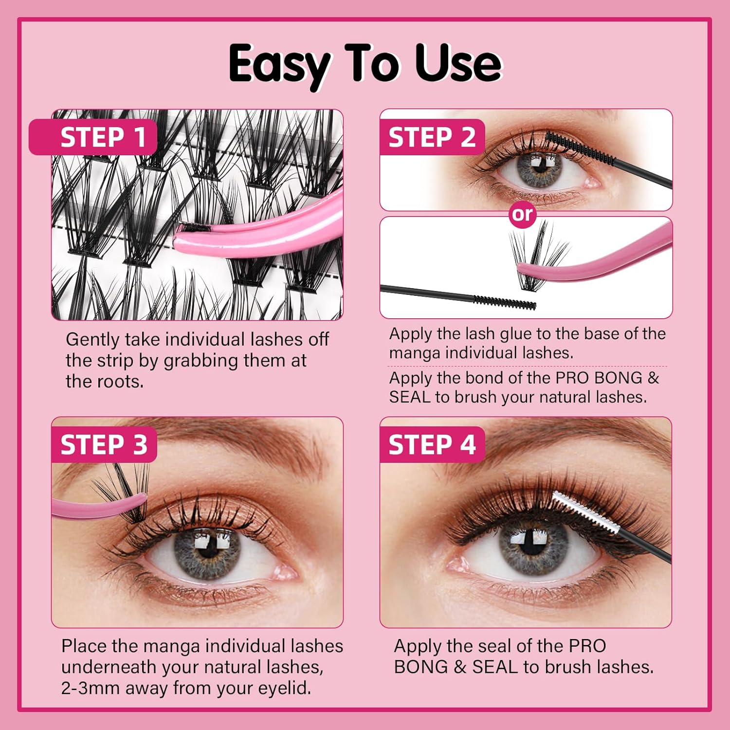 • Natural Like Your Own Lashes: Two different styles of C-curl and D-curl lash clusters and a variety of lash lengths can help you easily achieve a natural or dramatic look. In addition, they can be removed cleanly by the adhesive remover without any worries at all.
