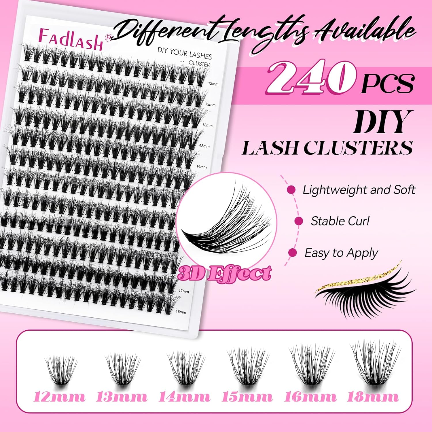 • FADLASH DIY lash extension kit: FADLASH cluster lashes with mixed length, lash bond and seal, lash tweezer in the eyelash extension kit. All the steps is just in this lash clusters kit. Also the lash kit wiil save your money and time.