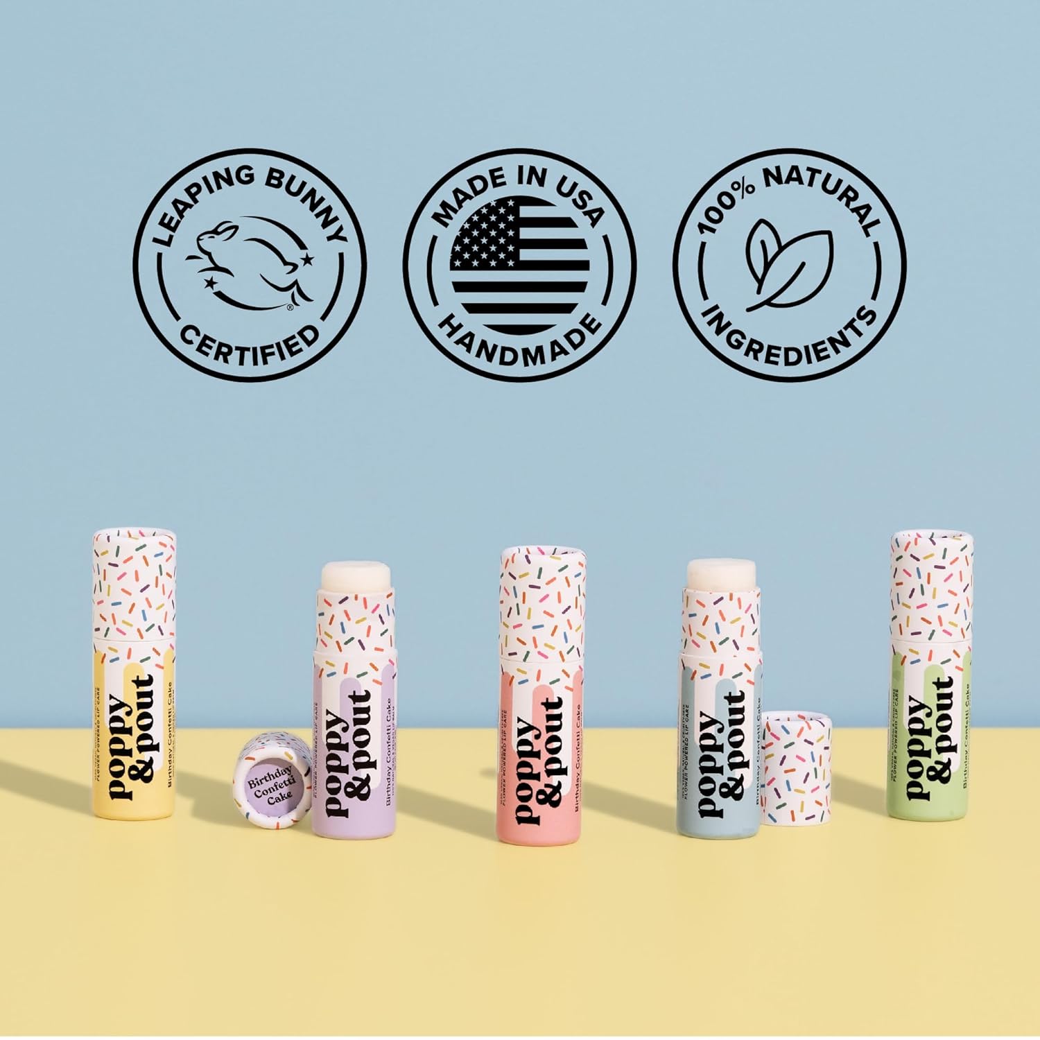 - MADE IN THE USA: Poppy & Pout is an independent small business, taking pride in our humble beginnings. We work closely within our community and make all of our lip balms in-house! You can rest easy when you use Poppy & Pout lip care products.
