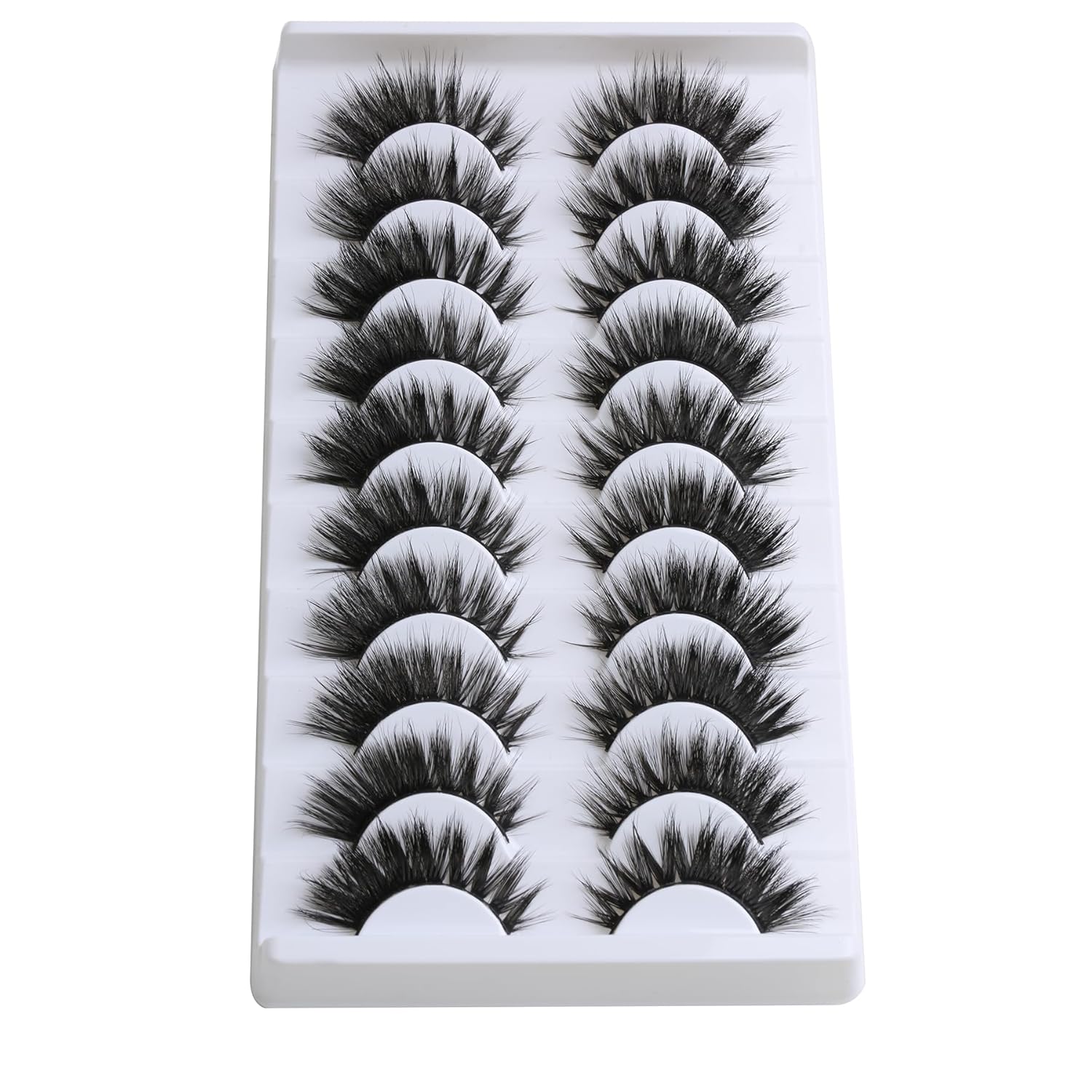 SUNWELL False Eyelashes 16mm Mink Lashes 8D Fluffy Cat Eye Faux Mink Lashes Strip Lashes Soft Reusable Luxury Volume Fake Eyelashes 10 Pairs Pack