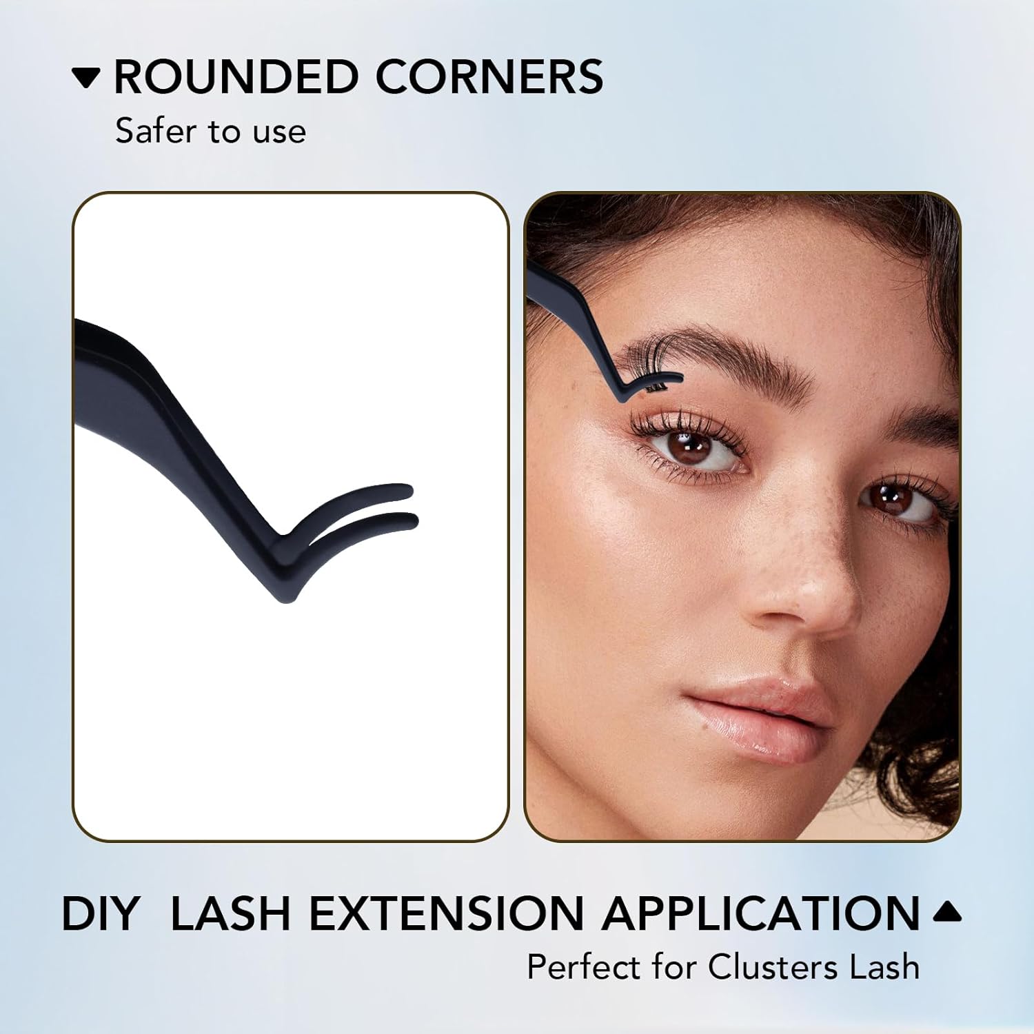 - 【 Premium Material 】 The false eyelash tweezers made of high quality stainless steel, durable and not easy to rust. The curved shape is very suitable for your eyes, and it is comfortable to use.TIPS: Please clean the eyelash cluster applicator after each use to ensure there is no glue residue on lashes clusters tweezers to keep them for long-term use