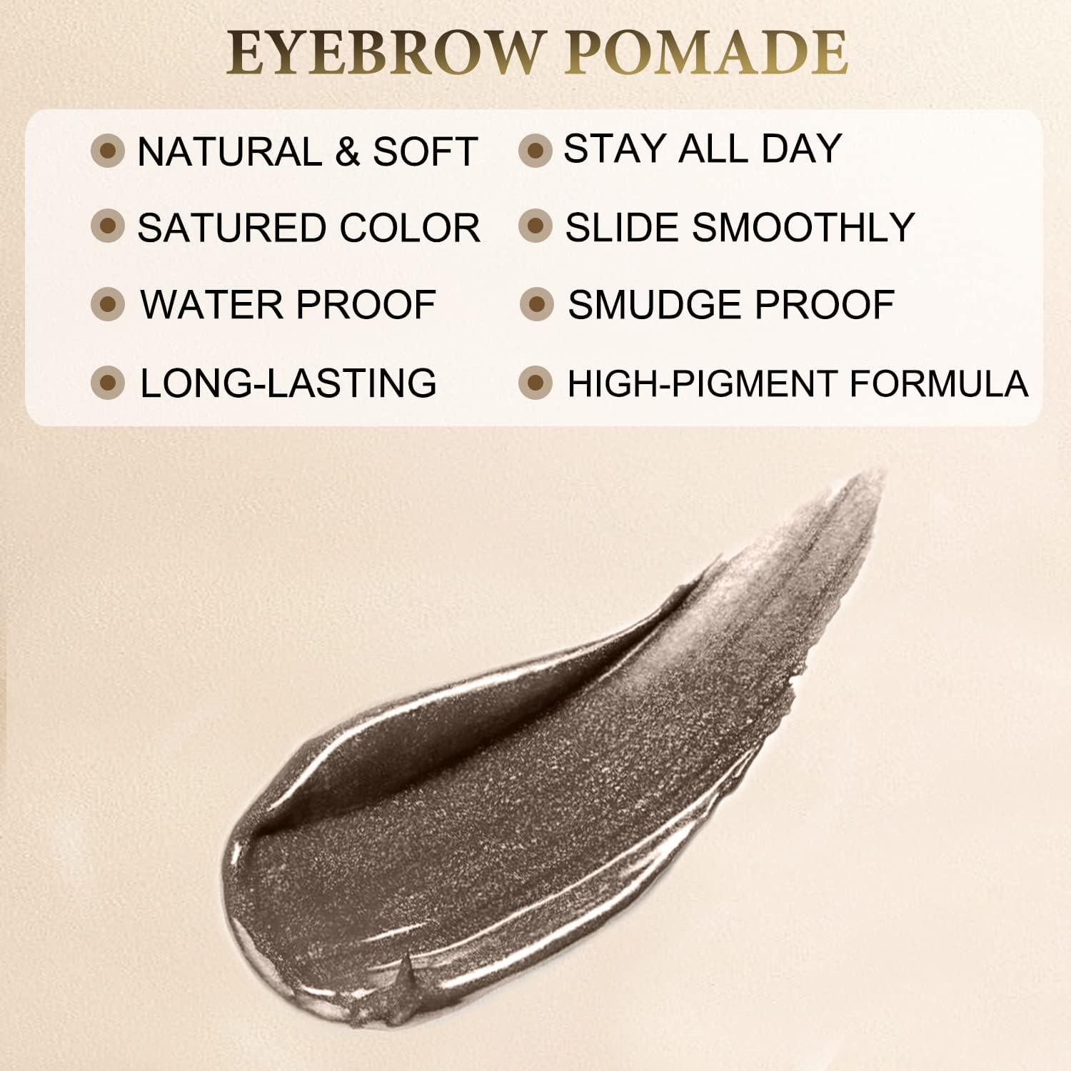 Eyebrow Pomade - Waterproof Brow Pomade for Long-lasting Results,Smudge Proof and Sweat Resistant Formula,Natural Eyebrow Makeup for All Skin Types and Tones - Black Brown