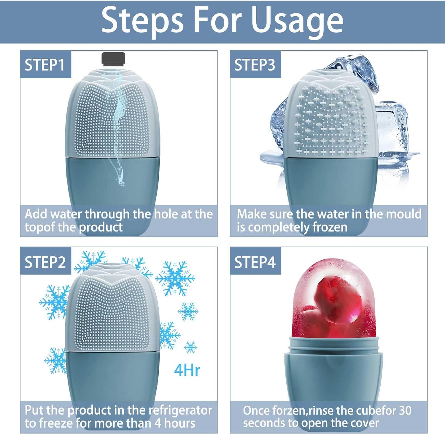 KOGITI Face Ice Roller & Mold - Beauty Facial Massage Tool for Puffiness Relief, Ice Cube Holder (Brush-Blue)