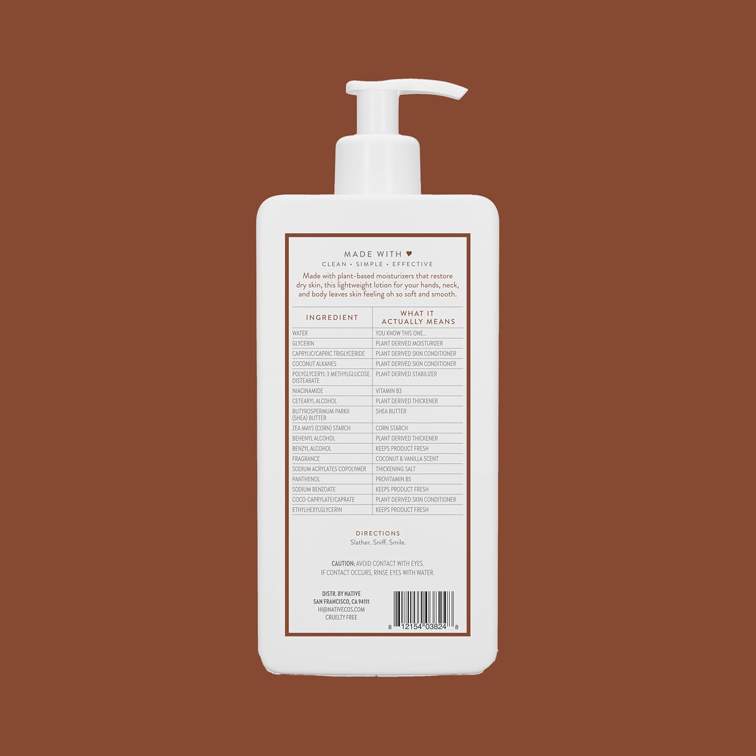 Native Body Lotion Contains Naturally Derived Plant-Based Moisturizers for Women and Men | Restores Dry Skin, Coconut & Vanilla, 16.5 fl oz