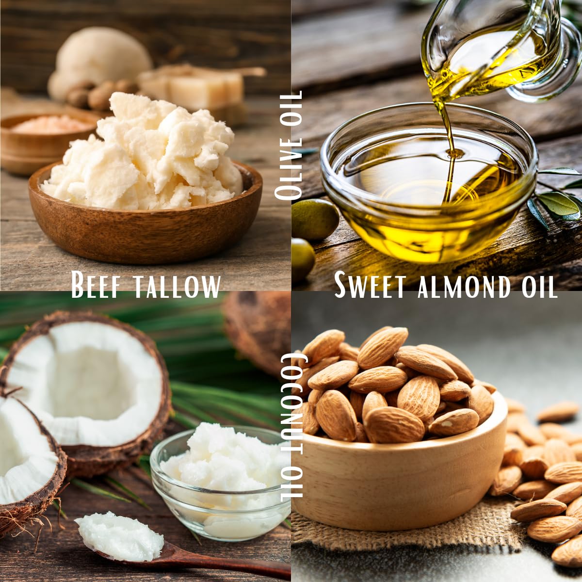 • PREMIUM INGREDIENTS: Each bar is made with a thoughtfully curated blend of ingredients, including beef tallow, which is rich in essential fatty acids that deeply moisturize and pamper your skin.