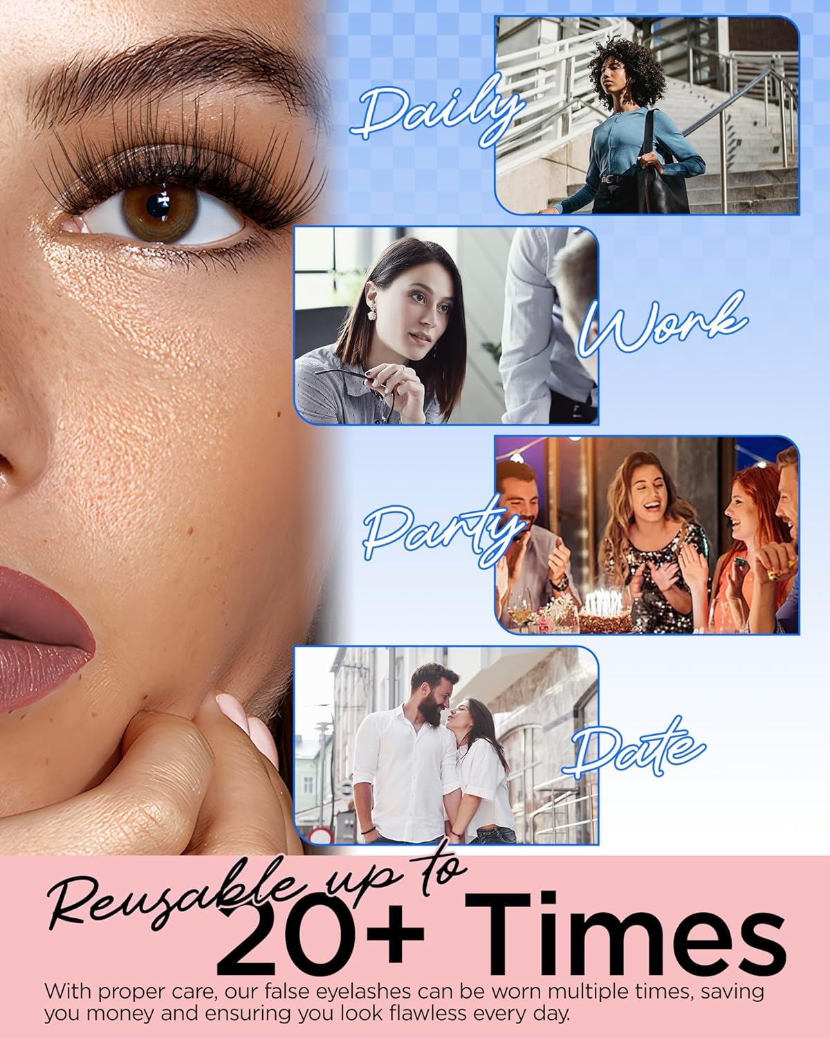• 10 Styles, Endless Possibilities - From everyday elegance to night-out glam, choose from 10 versatile styles. The natural wispy lashes adapts to every look, ensuring you always have the perfect lashes on hand.