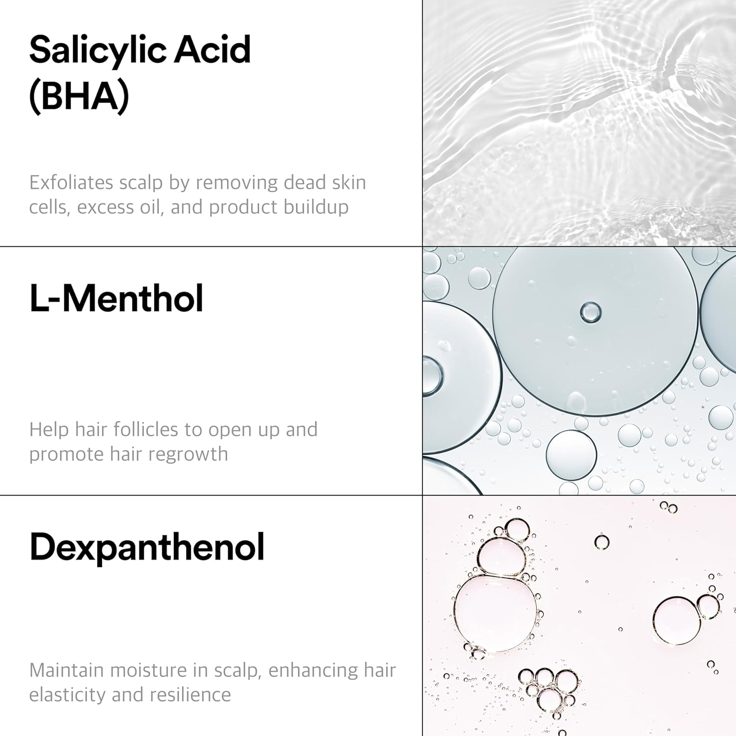 - Oil-Balancing & Clarifying: Specifically designed to combat excess sebum, this formula features Piroctone Olamine and Salicylic Acid to help reduce buildup, exfoliate dead skin, and keep the scalp feeling fresh. Enriched with Menthol for a cooling sensation, it revitalizes follicles while maintaining a healthy oil balance—perfect for those seeking a lightweight solution that addresses scalp greasiness without stripping hair of essential moisture.