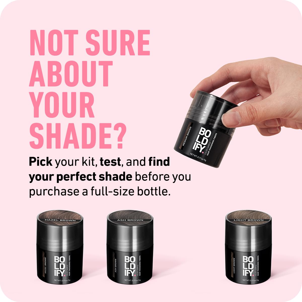 Boldify Hair Fibers Color Sample Kit - Fill In Thinning and Fine Hair for an Instantly Fuller, Thicker Look - 14 Shades for Women & Men - Dark Browns + Black