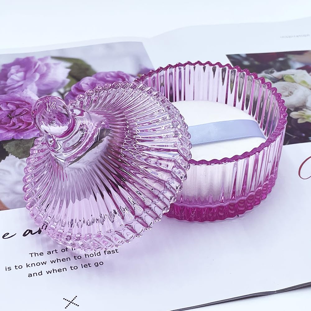 - Exquisite and elegant crystal glass container: The container is made of high-quality crystal glass, with a unique and clever design that reflects a dazzling light in the sunlight.It is not just a powder puff jar,but also a decorative artwork.It can also be used as a container for jewelry,candy,and chocolate