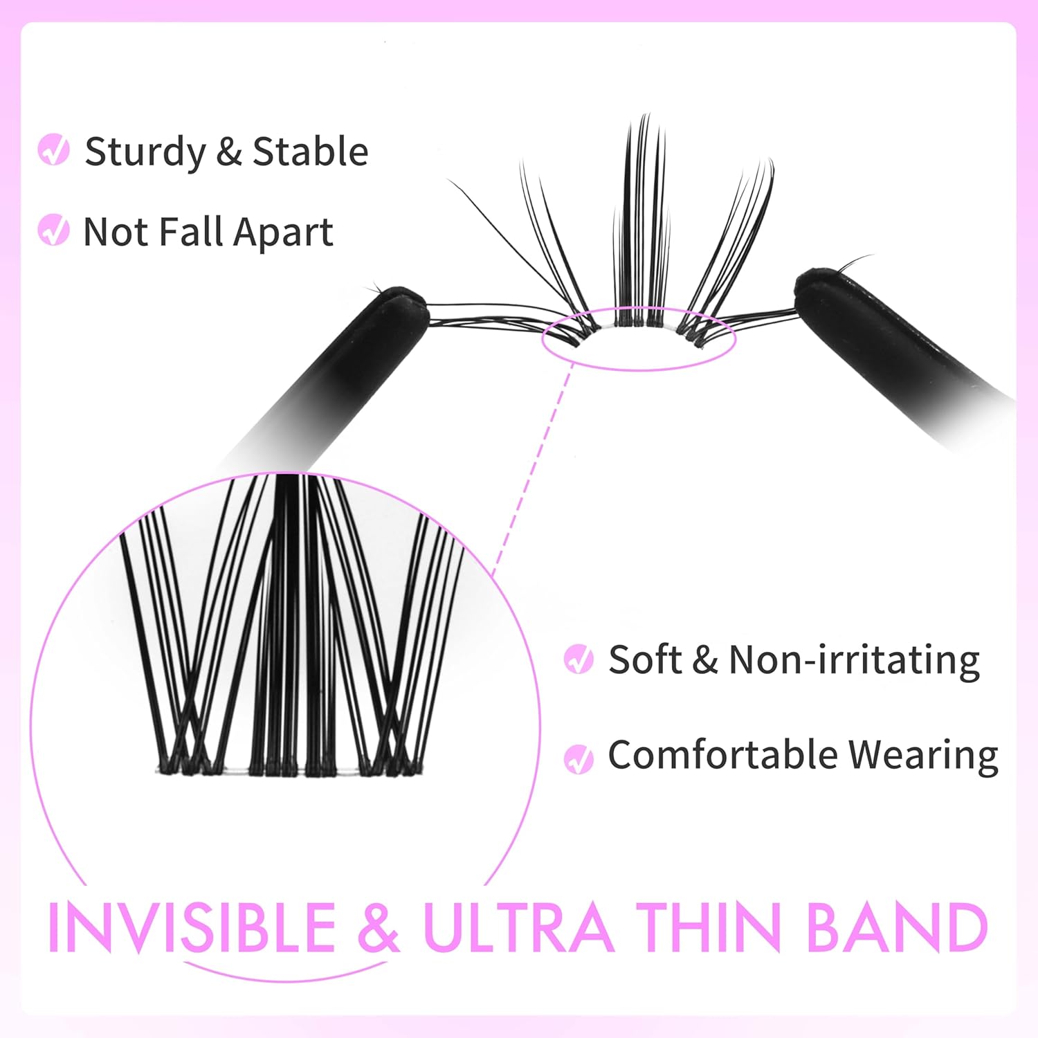 - Newbie's Five-Second Lashes : Eyelash clusters with wider bands, only 4-6 clusters per eye, ensure that lash newbies can simply and quickly complete a perfect lash extension(Only eyelashes, does not include glue and glue remover, can be purchased separately)