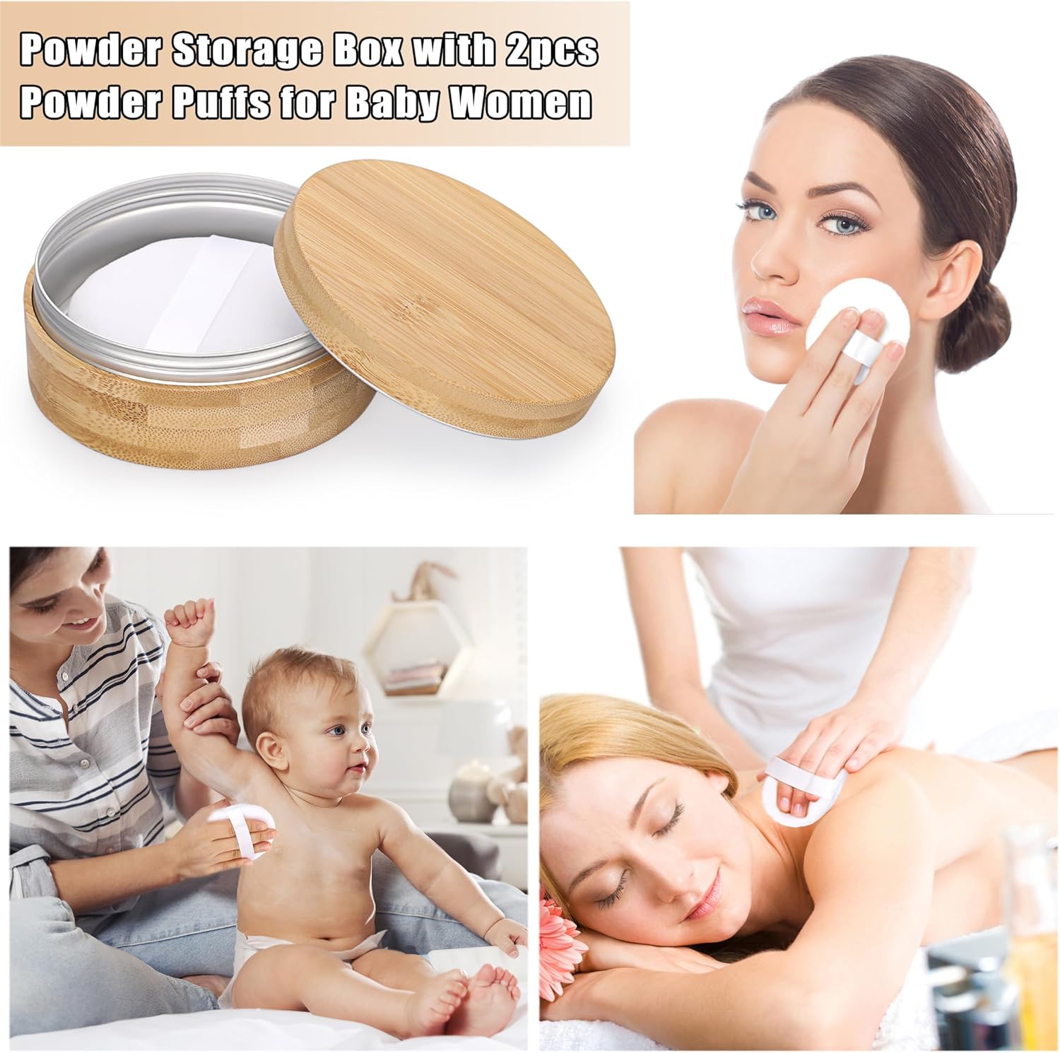 - 【Sturdy & Soft 】Our dusting powder container was made of high quality bamboo, sturdy and solid. Not easy to break or deform. Our puffs are made of high quality cotton, soft and skin-friendly, perfect for babies and women