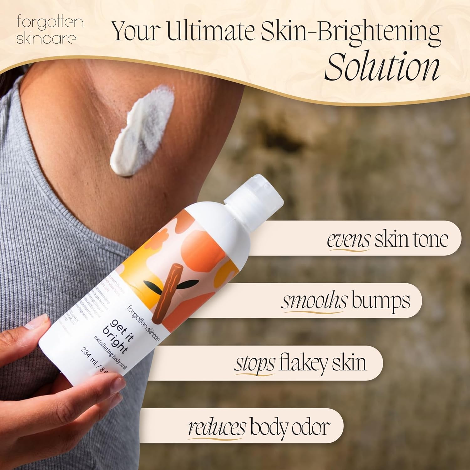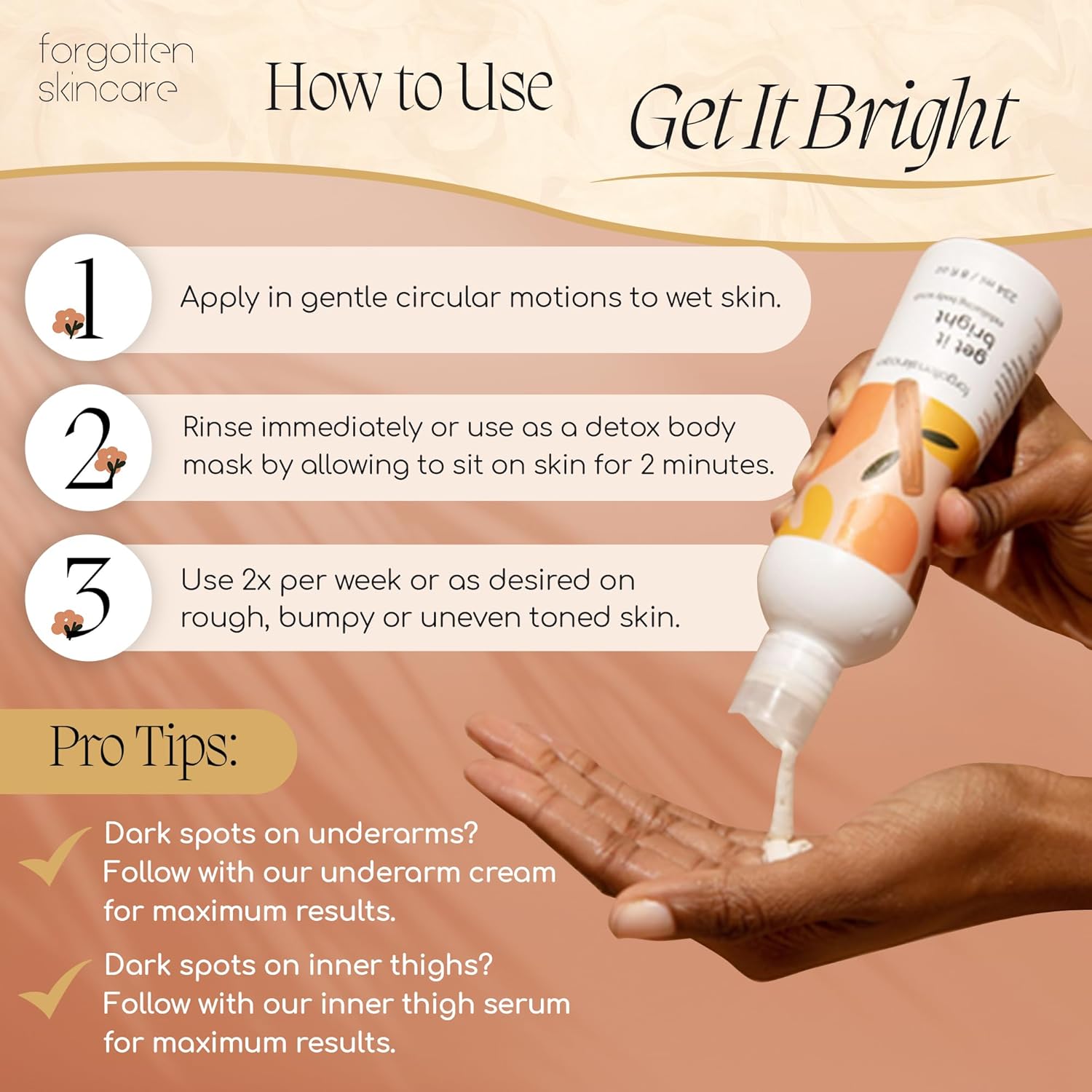 Get It Bright Exfoliating Body Scrub with Glycolic Acid & Pumice for Dark Armpits, Bikini Area, KP Bumps, Rough Skin – Daily AHA Polish to Smooth, Soften & Prep Sensitive Areas