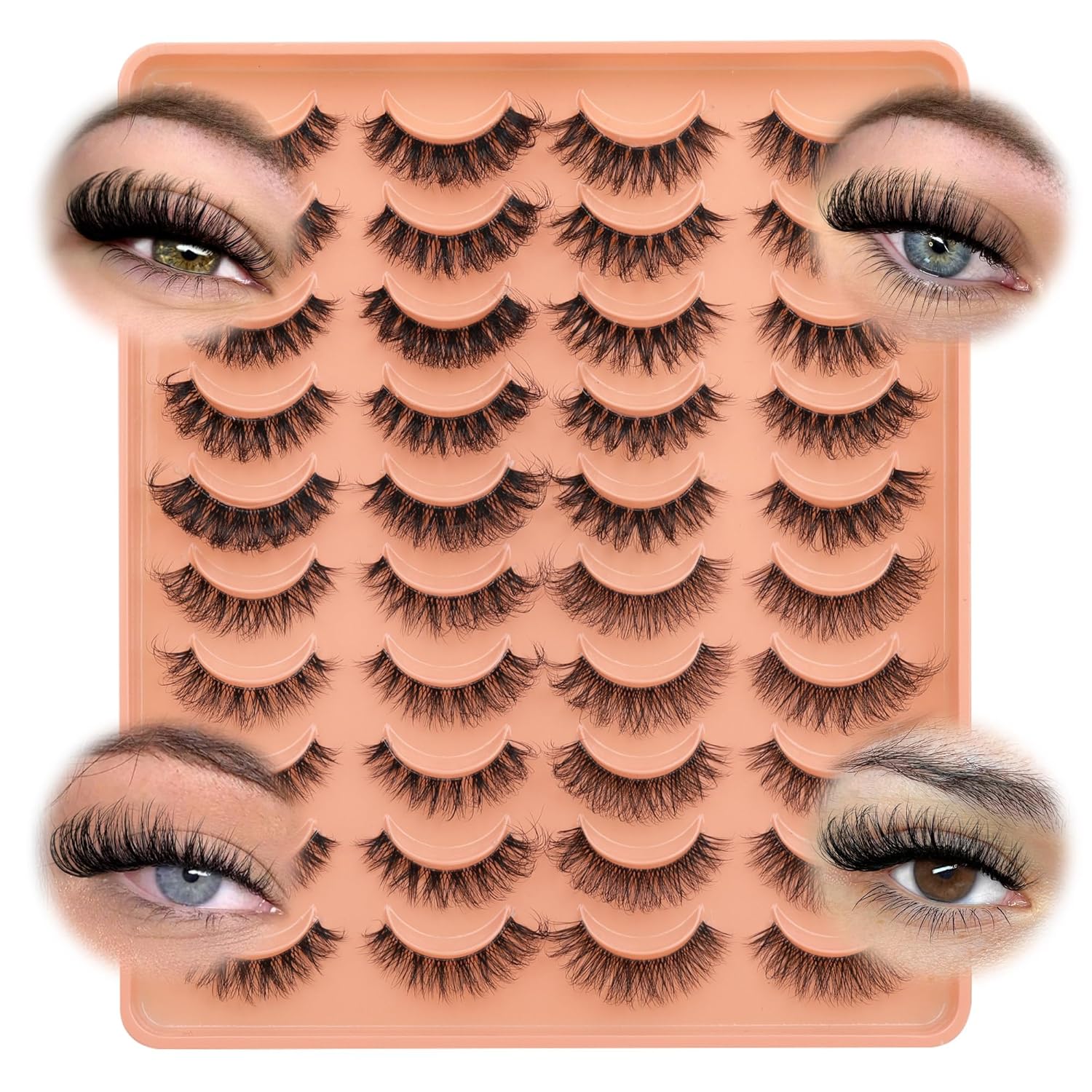 JIMIRE False Eyelashes 4 Styles Mixed Demi Wispies Cat Eye Lashes Mink Lashes Fluffy D Curl Russian Strip Lashes Natural Look Fake Lashes Pestañas 20 Pairs Pack