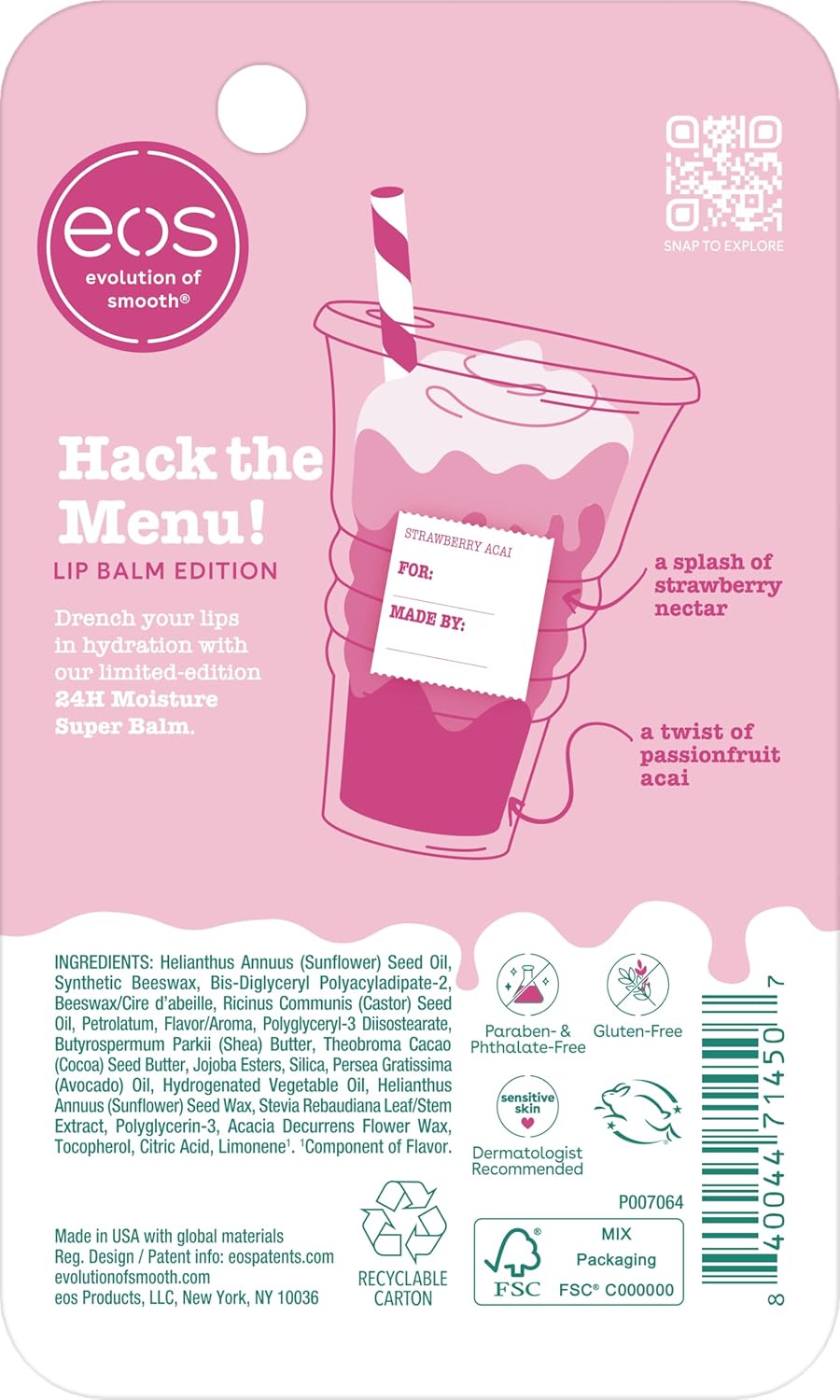 eos 24H Moisture Super Balm - Strawberry Acai, Lip mask, Moisturizing, Lip Treatment, Limited-Edition Skincare, 0.35 fl oz