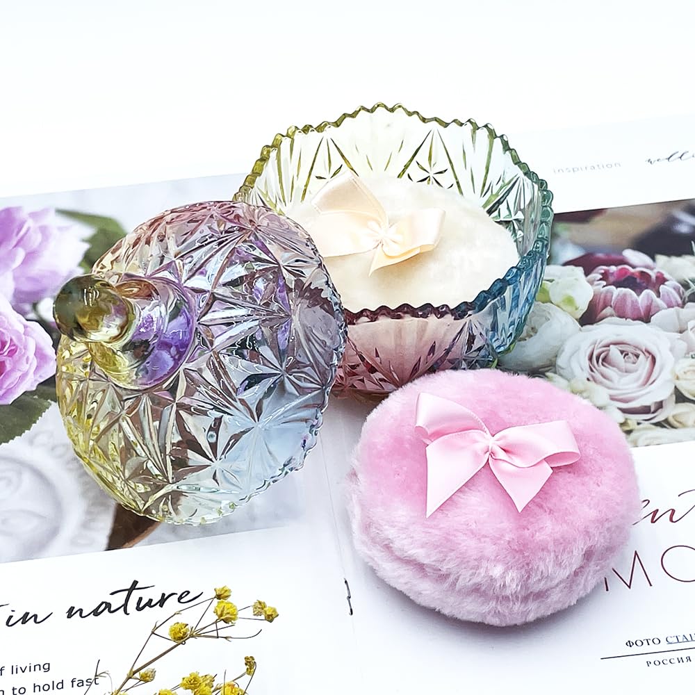 - Decorative Glass Powder Jar:These elegant colorful glass containers is made of Ultra-clear soda-lime glass,are perfect for storing talcum powder, bath salts,or potpourri while adding a touch of sophistication to your vanity, nursery,or gift sets.