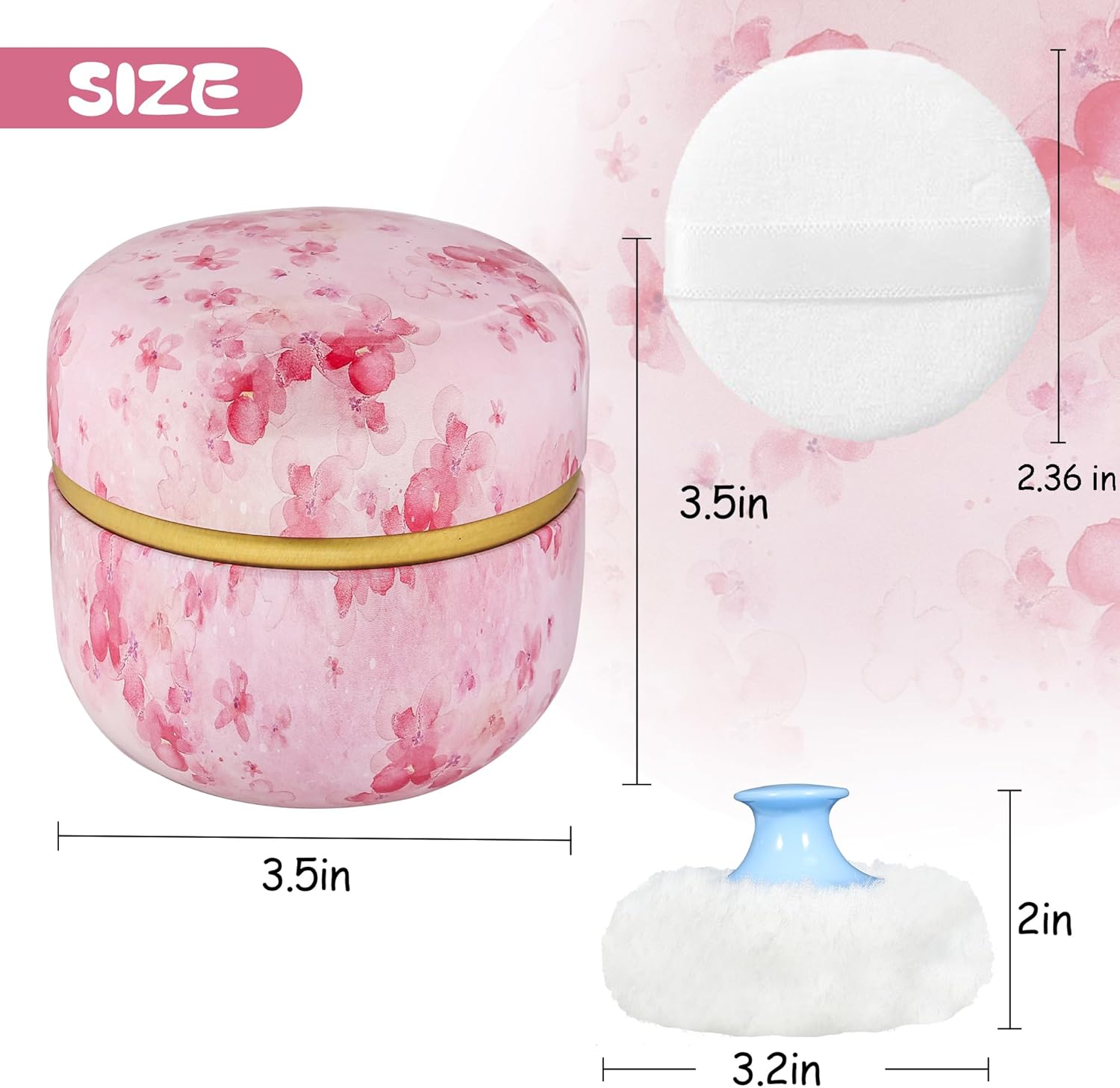 - Size: The powder box is 3.2" diameter/width.The powder puff is 3.15"/8cm in diameter and 2"/5cm in height.The small powder puff is 2.36"/6cm in diameter.