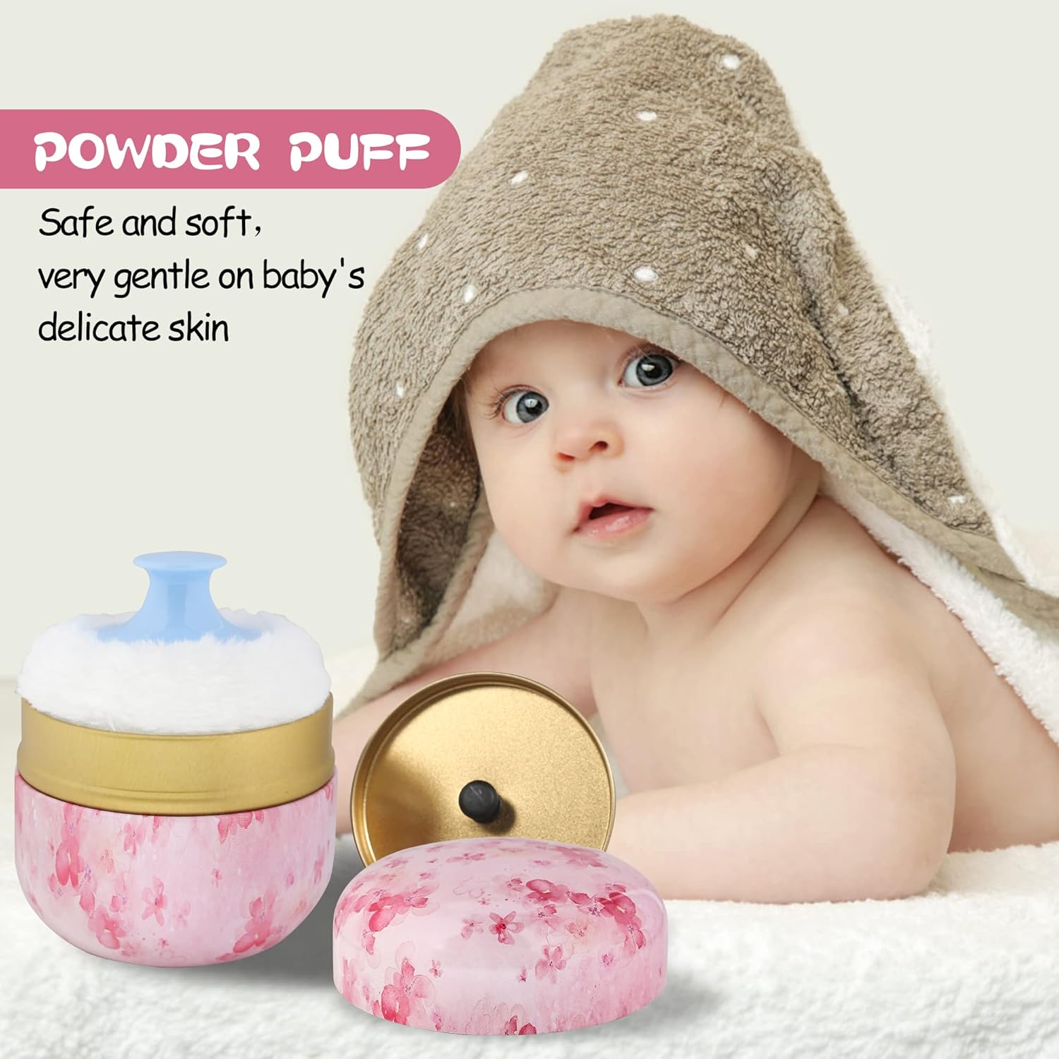 WEMEGA Body Powder Case with Powder Puff Powder Container Tea Box for Baby and Women Powder Puff and Powder Case for Travel (Pink Flower1)