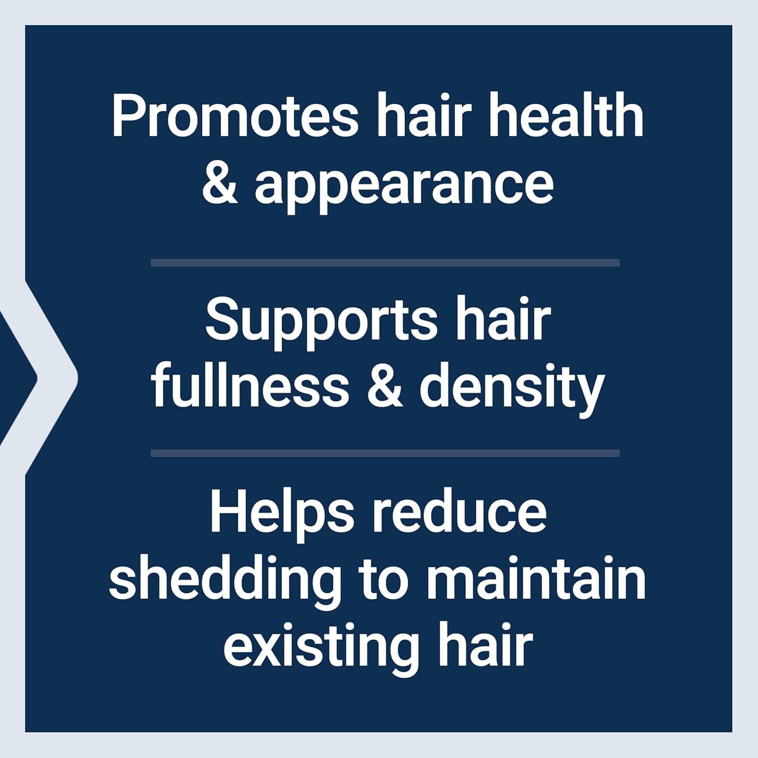 - Product Benefits : Helped reduce shedding to maintain existing hair, Helps maintain already normal levels of DHT, Promotes hair health & appearance, Results reported within an average of 3-4 months of use, Supports hair fullness & density Helped reduce shedding to maintain existing hair, Helps maintain already normal levels of DHT, Promotes hair health & appearance, Results reported within an average of 3-4 months of use, Supports hair fullness & density