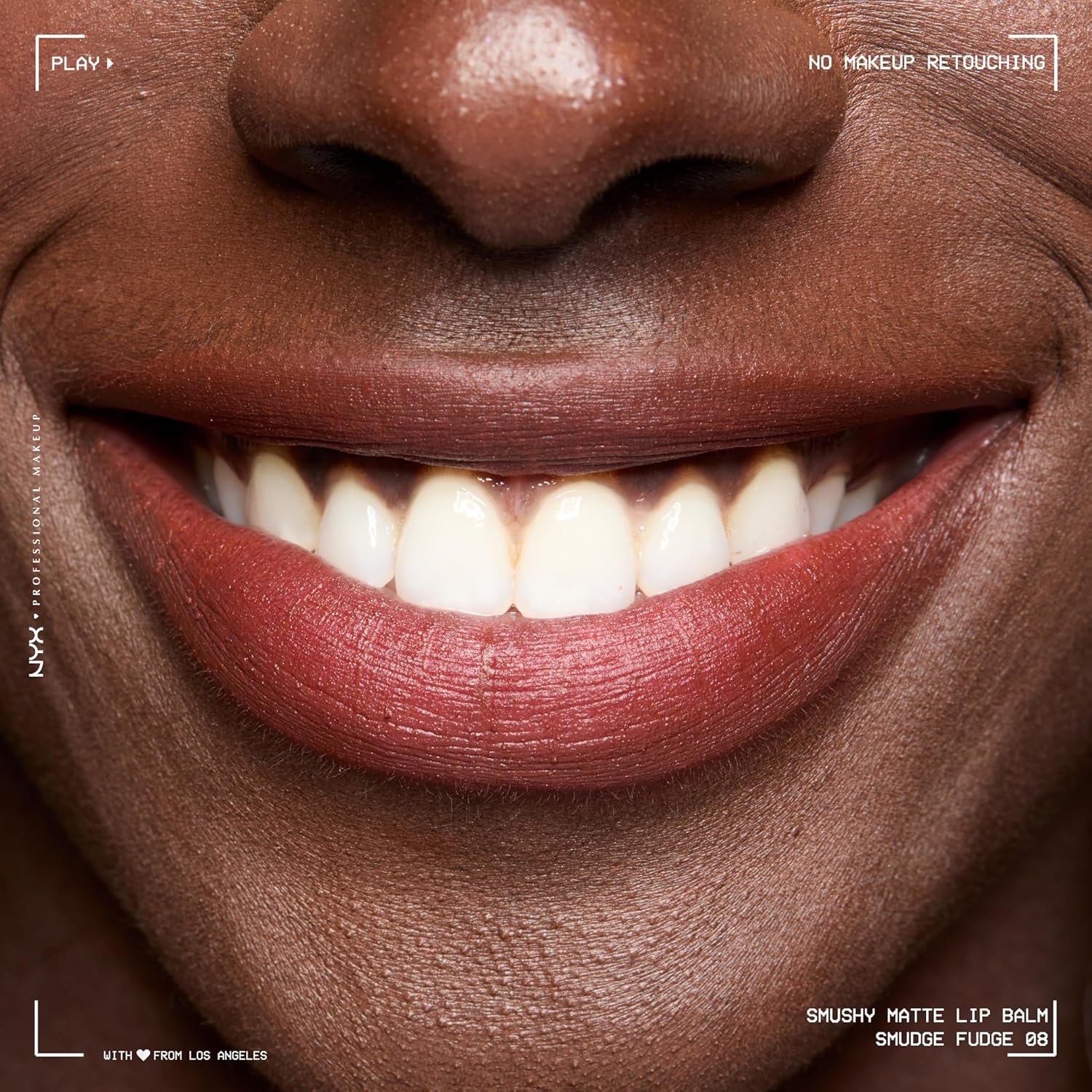 NYX PROFESSIONAL MAKEUP Smushy Matte Lip Balm, Tinted Lip Moisturizer with Soft, Matte Finish - Smudge Fudge (Chocolate Brown)