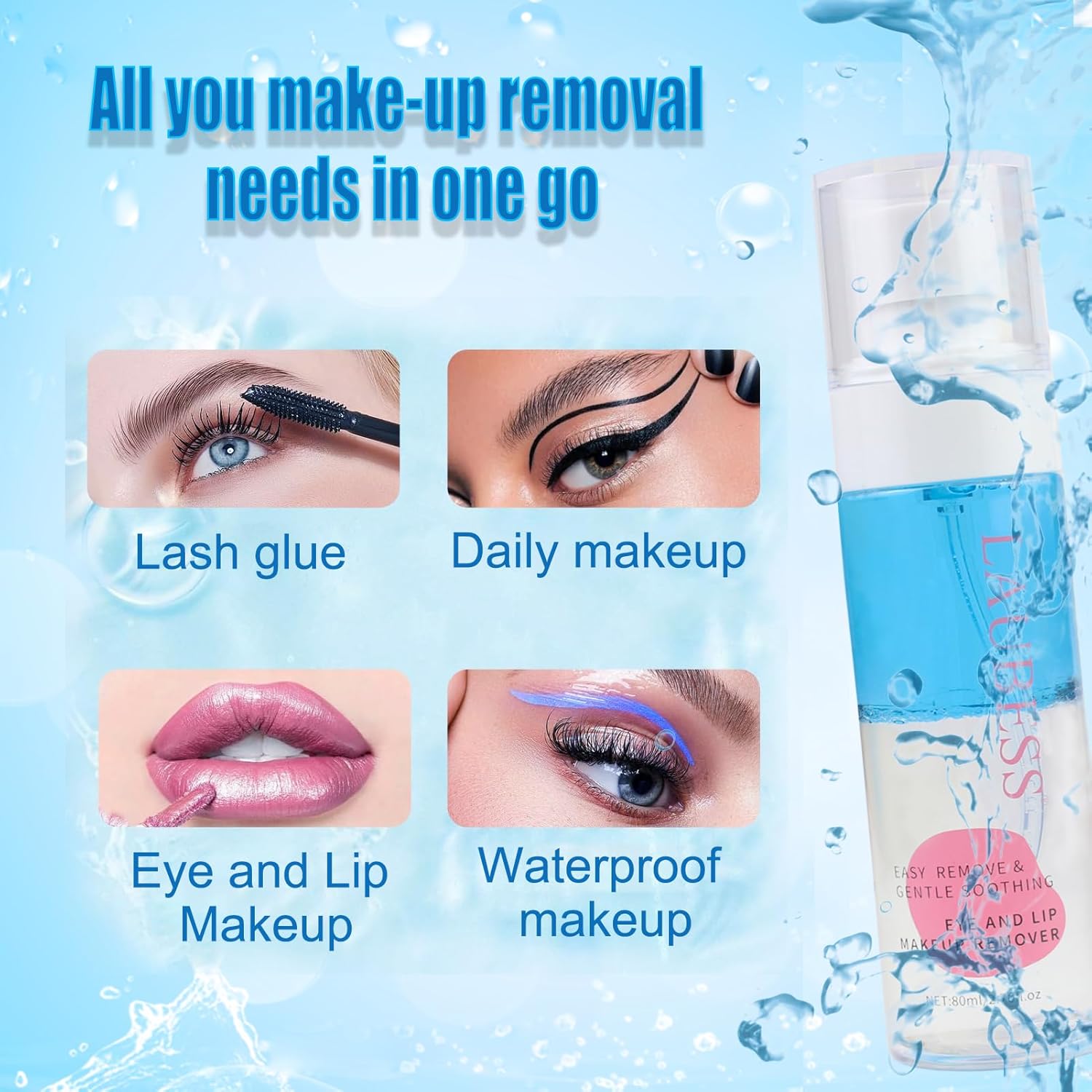 • Multifunctional: The water-oil hybrid formula is versatile and effective. It removes daily makeup, waterproof makeup and DIY lash glue, providing an all-in-one solution.