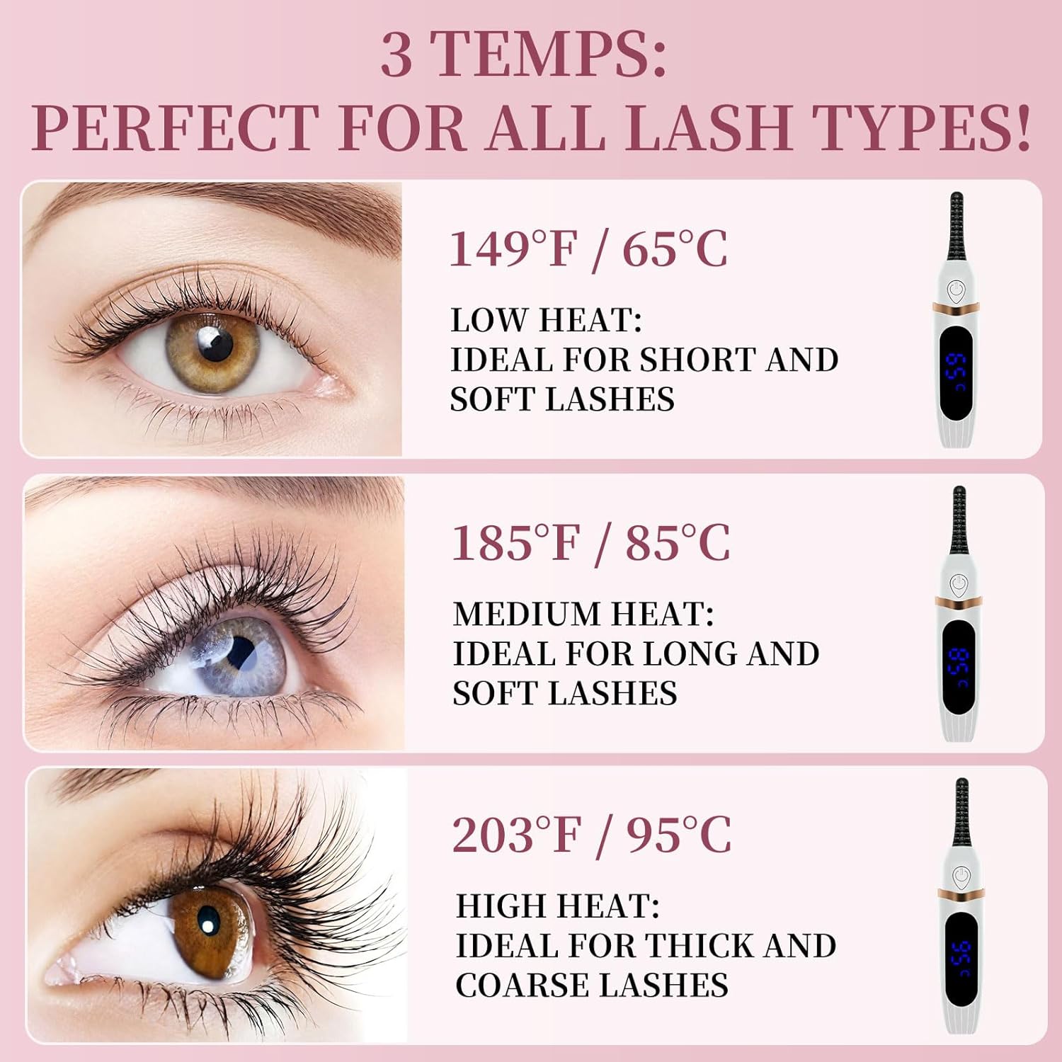 • 【Three Adjustable Temperatures for All Lash Types】Our rechargeable eyelash curler features an LED display with three temperature settings—65℃ (149℉), 85℃ (185℉), and 95℃ (203℉)—to suit different lash types. Whether your lashes are fine, thick, straight, or curly, easily choose the ideal heat level with a button press for perfect, customized curling every time.