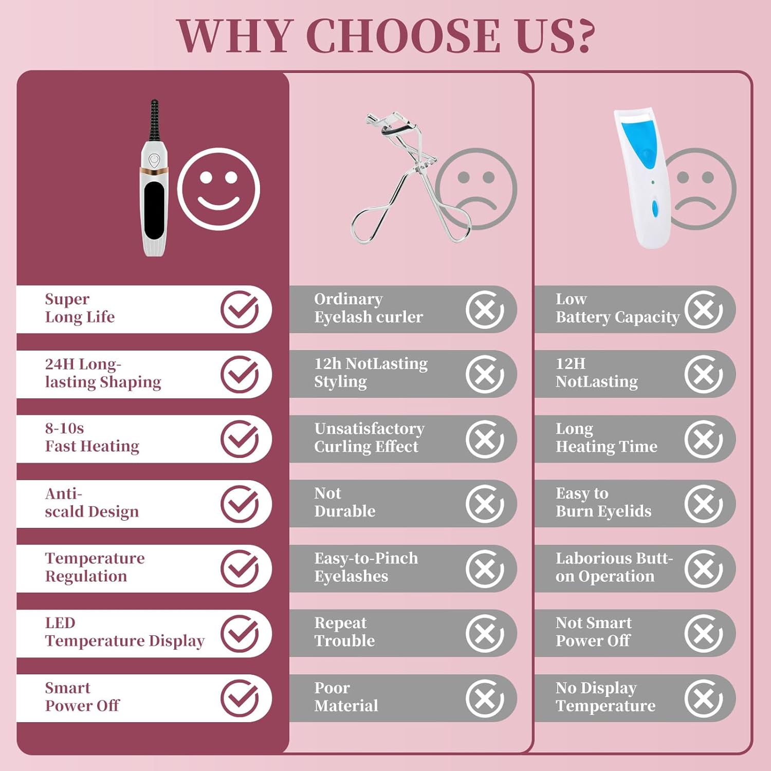 • 【Lasts 24 Hours】Say goodbye to flat lashes! Our heated eyelash curler combines an ergonomic design with advanced heating technology to lock in your curl for up to 24 hours. Tested and loved by users, it keeps your lashes beautifully lifted all day—so you can face the day with confidence.