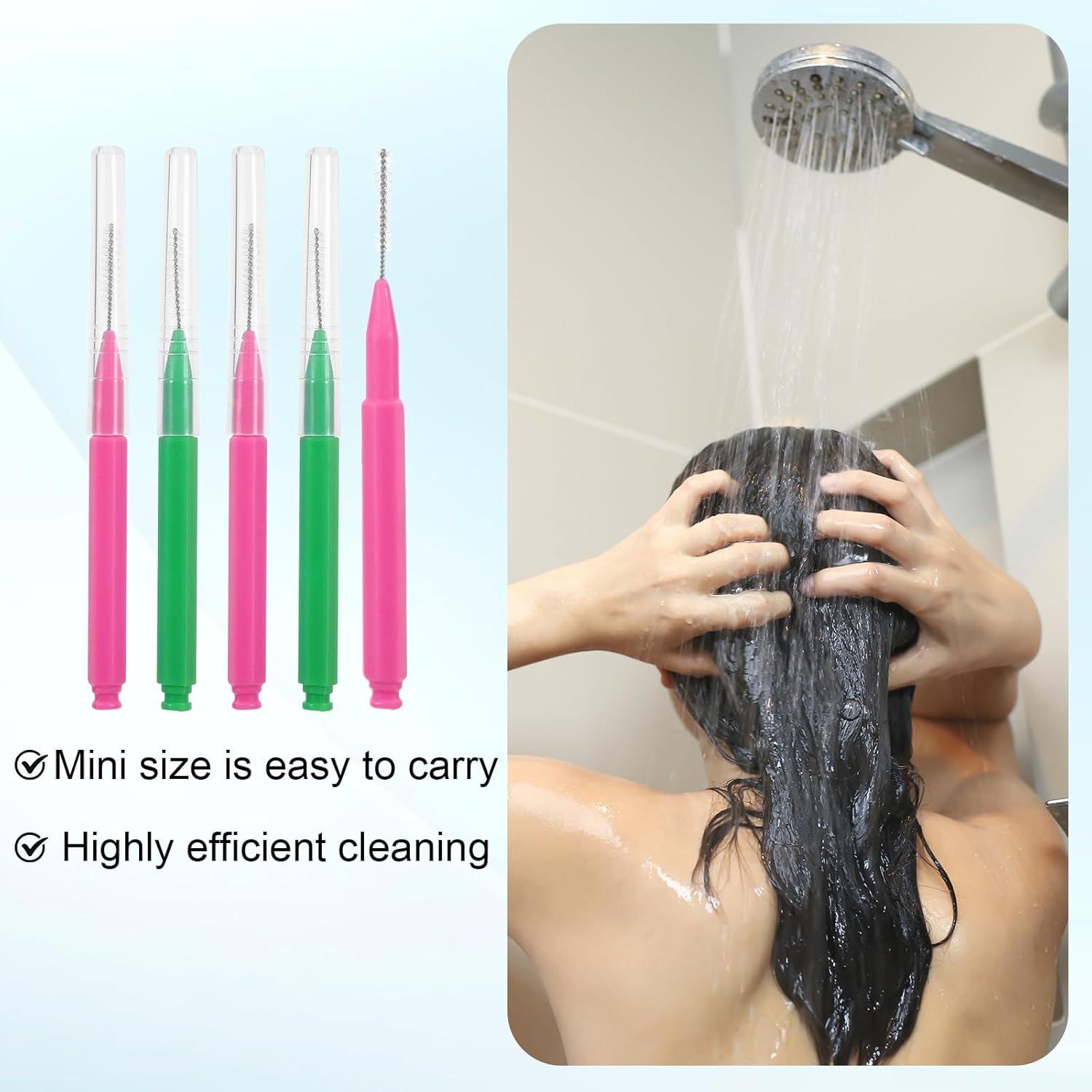 - Package Includes - This shower head cleaning brush package contains 40 showerhead cleaning brushes and 10 nozzle unclogger picks. There are enough shower head cleaning brush small hole for you to use for a long time, which can meet your needs in different aspects