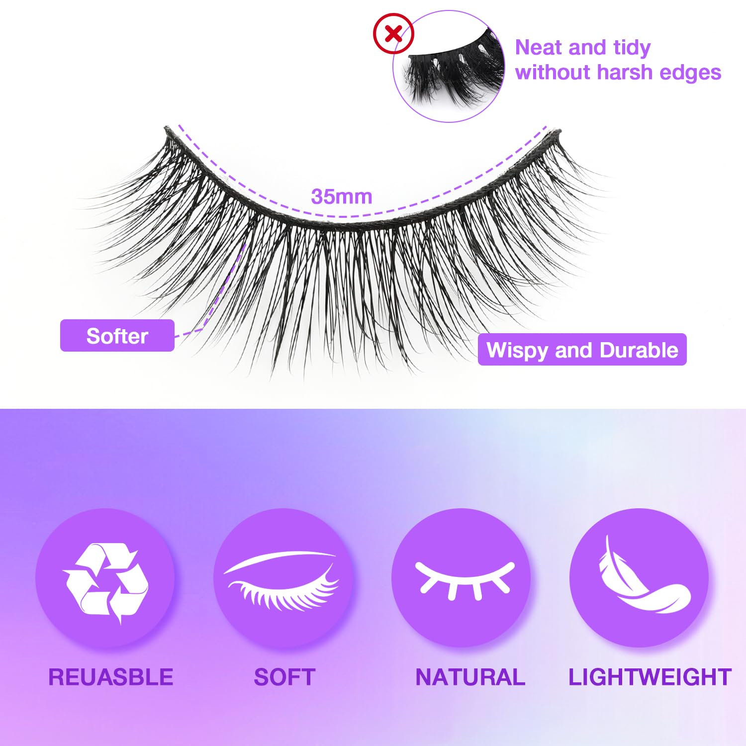 - 7 Pairs Natural-Looking Lashes Kit: Endless Beauty! Beginner-friendly false eyelashes with bond + seal + tweezer included! Achieve natural-looking wispy lashes in minutes – easy strip lashes with flexible thin band for seamless blending.