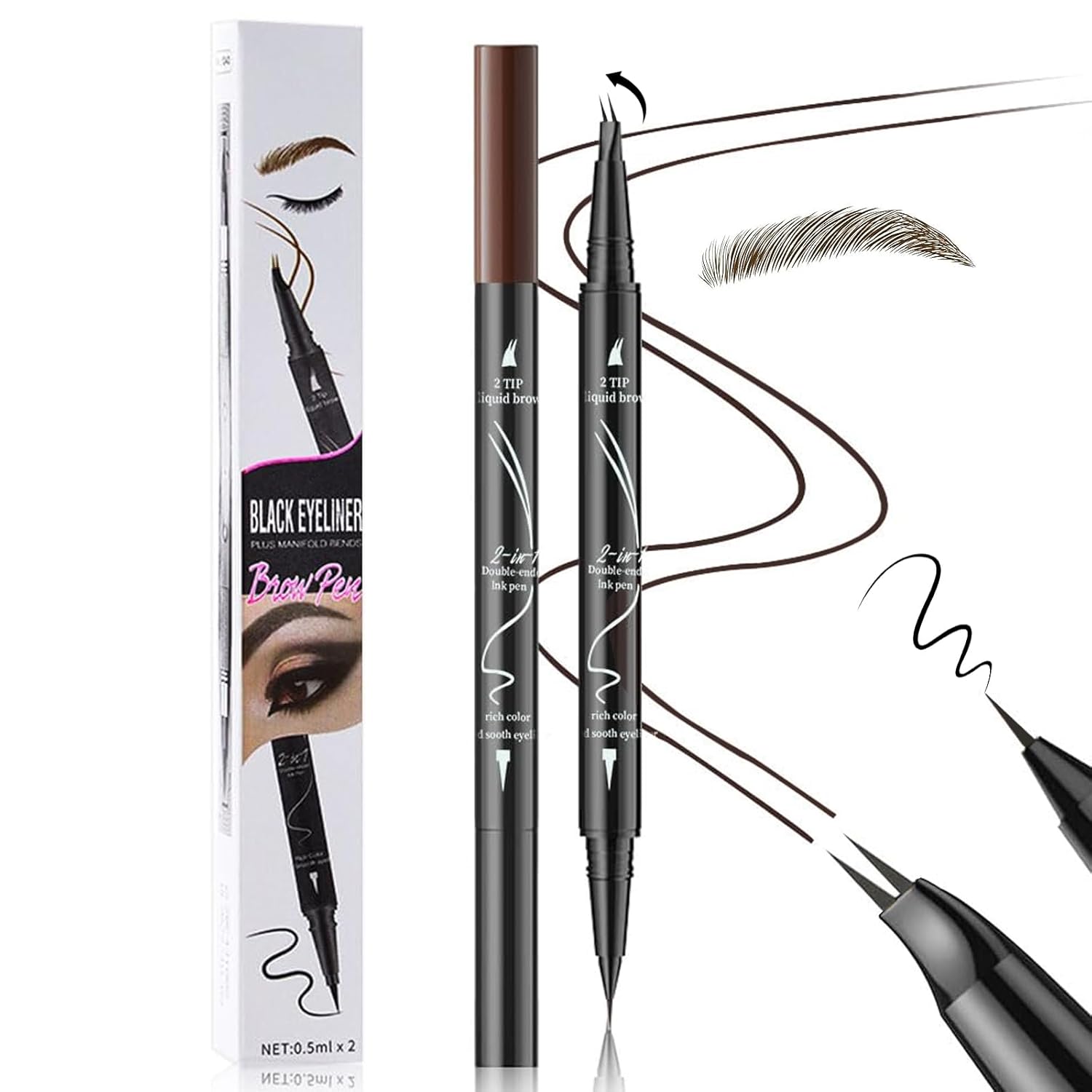 - 【Precise Hair - Like Strokes】Featuring a precise liner brush - tip and a 2 - fork tip, the microblading eyebrow pencil can draw hair - like strokes. It enables you to fill and blend color into your brows with ease, creating a natural and realistic look. The ultra - precise brow pencil is highly rated among users, offering the best solution for thinning eyebrows or those who want to enhance their natural brows. The eyeliner pen's precision tip enables you to create sharp, thin lines or bold, dramatic looks with ease, giving you full control over your makeup style.