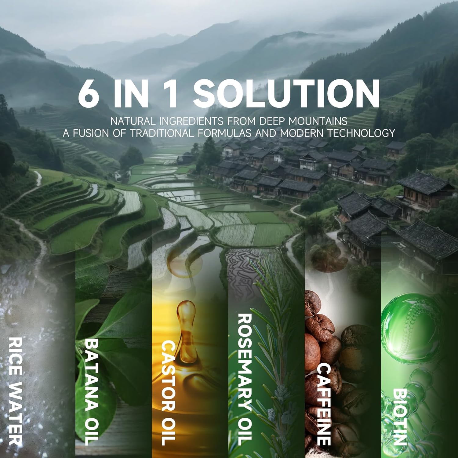 Hair Growth Serum - Rosemary Batana Rice Water Biotin Hair Spray for Hair Growth - Hair Growth Thickening Product - Hair Loss Treatments for Women Men(60 ML/2.0FL.oz)