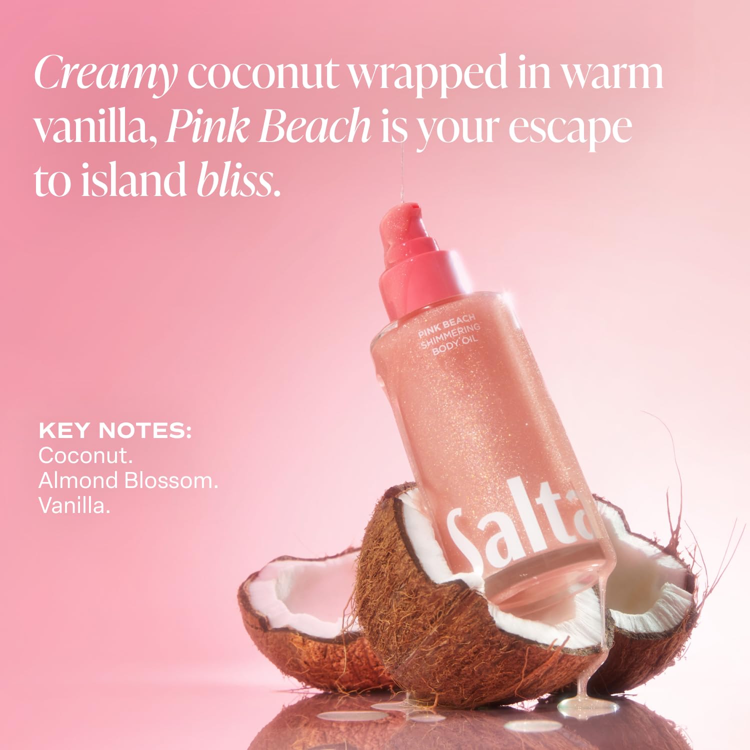 Saltair Shimmering Body Oil - Pink Beach Scented Dry Oil Moisturizer with Light-Reflecting Pearl Pigments. Moisturizing Glow for All Skin Types - 4 Fl Oz