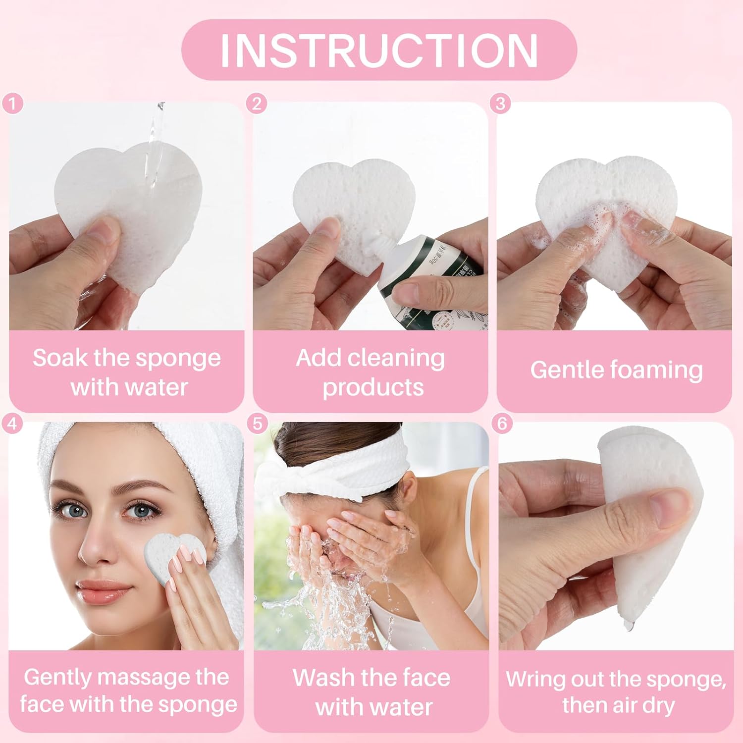 - 【Packing Quantity】--50-Count heart face sponges for cleansing.